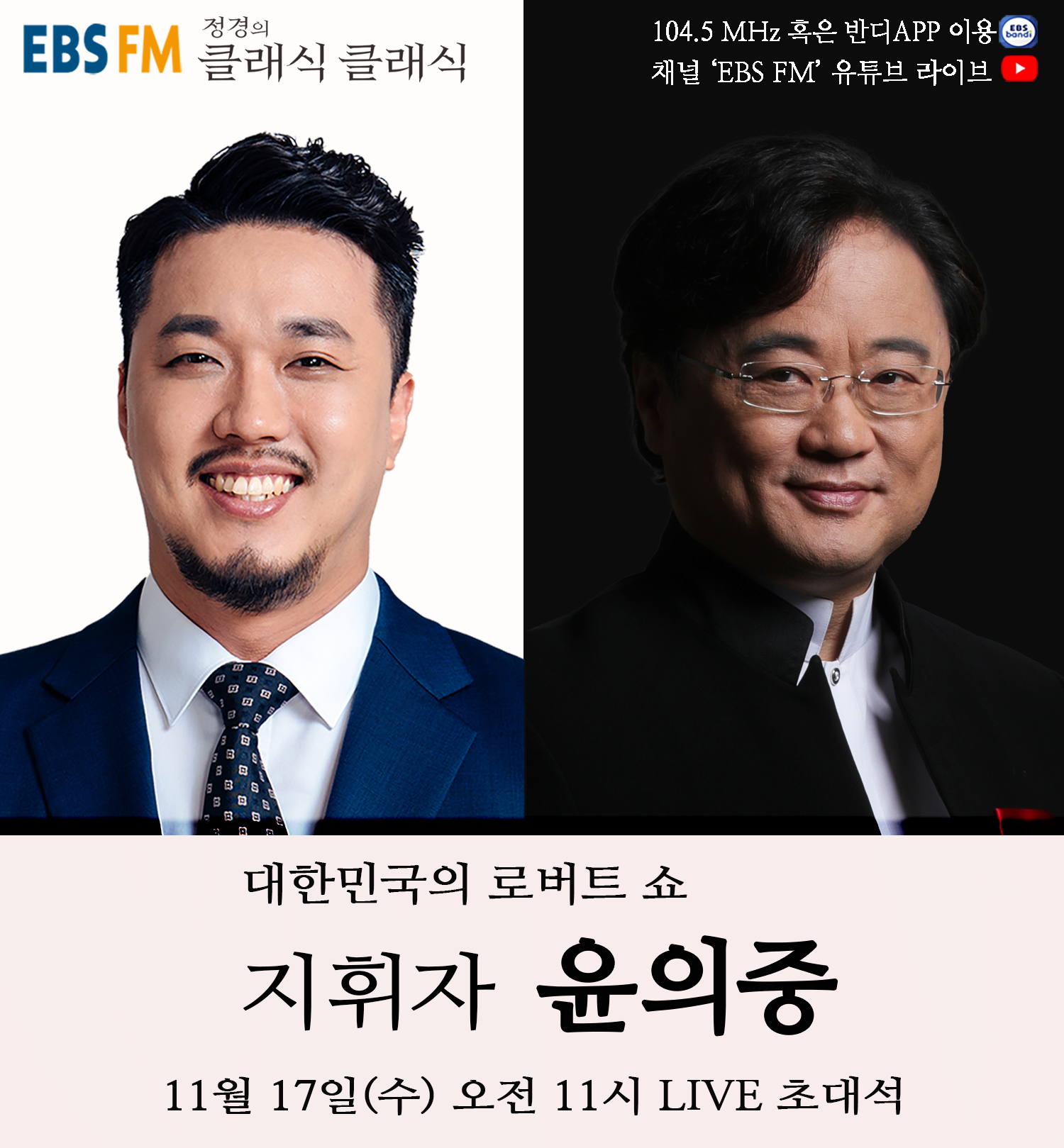 매주 수요일 코너인 '수요 초대석'에서는 클래식계의 명사들을 초대하고 있다. 11월 17일 수요일 오전 11시에는 지휘자 윤의중이 출연해서 음악과 인생 이야기를 들려줄 예정이다.