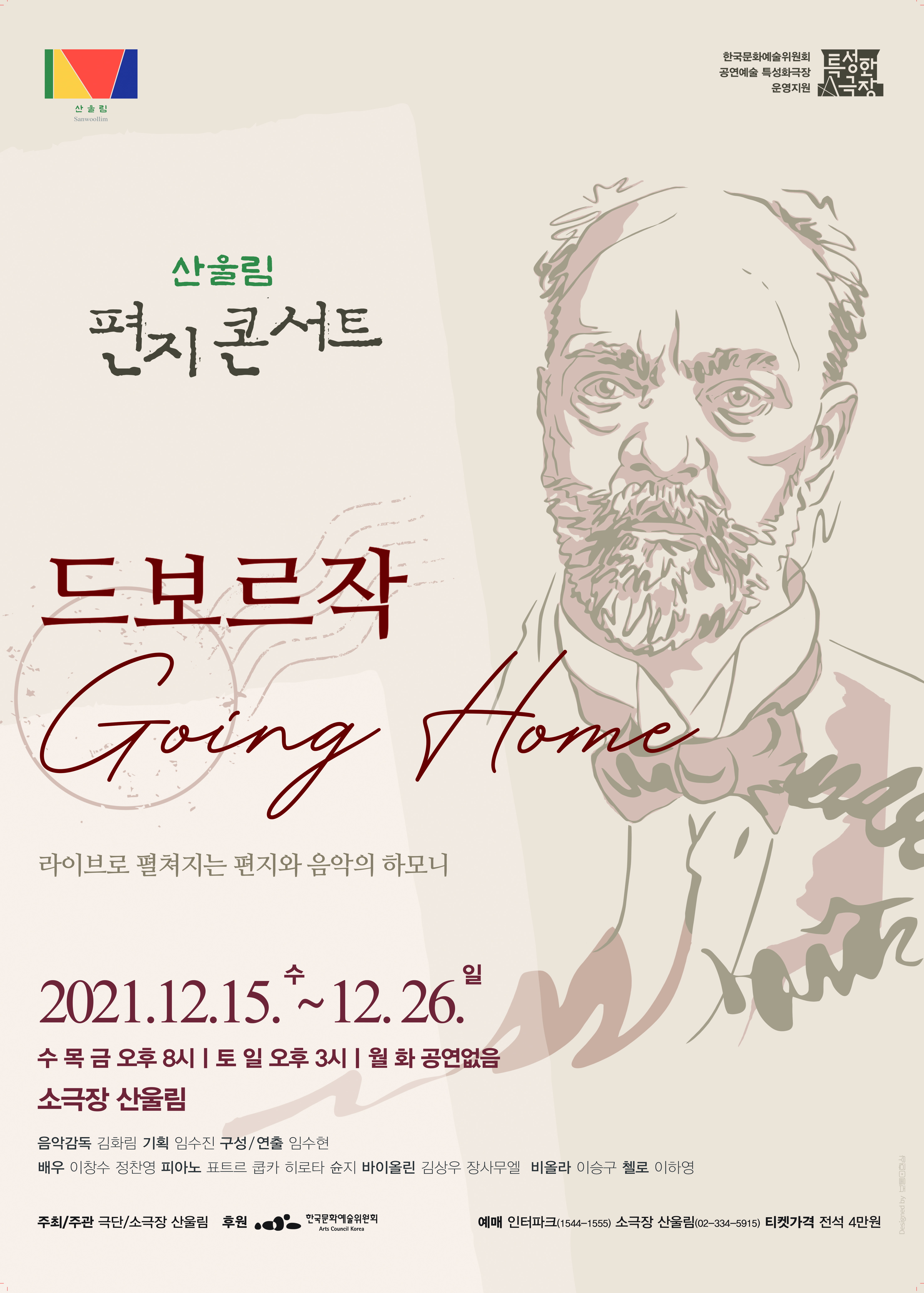 산울림은 이번 공연을 더욱 알차게 준비하여, 더 많은 관객들과 드보르작의 아름다운 음악 세계를 공유하고자 합니다. 이번 산울림 편지콘서트를 통해, 길고 힘겨운 코로나 일상에 지친 모든 분들이 한 해를 마무리하며 위로와 평화를 얻으실 수 있기를 바란다.