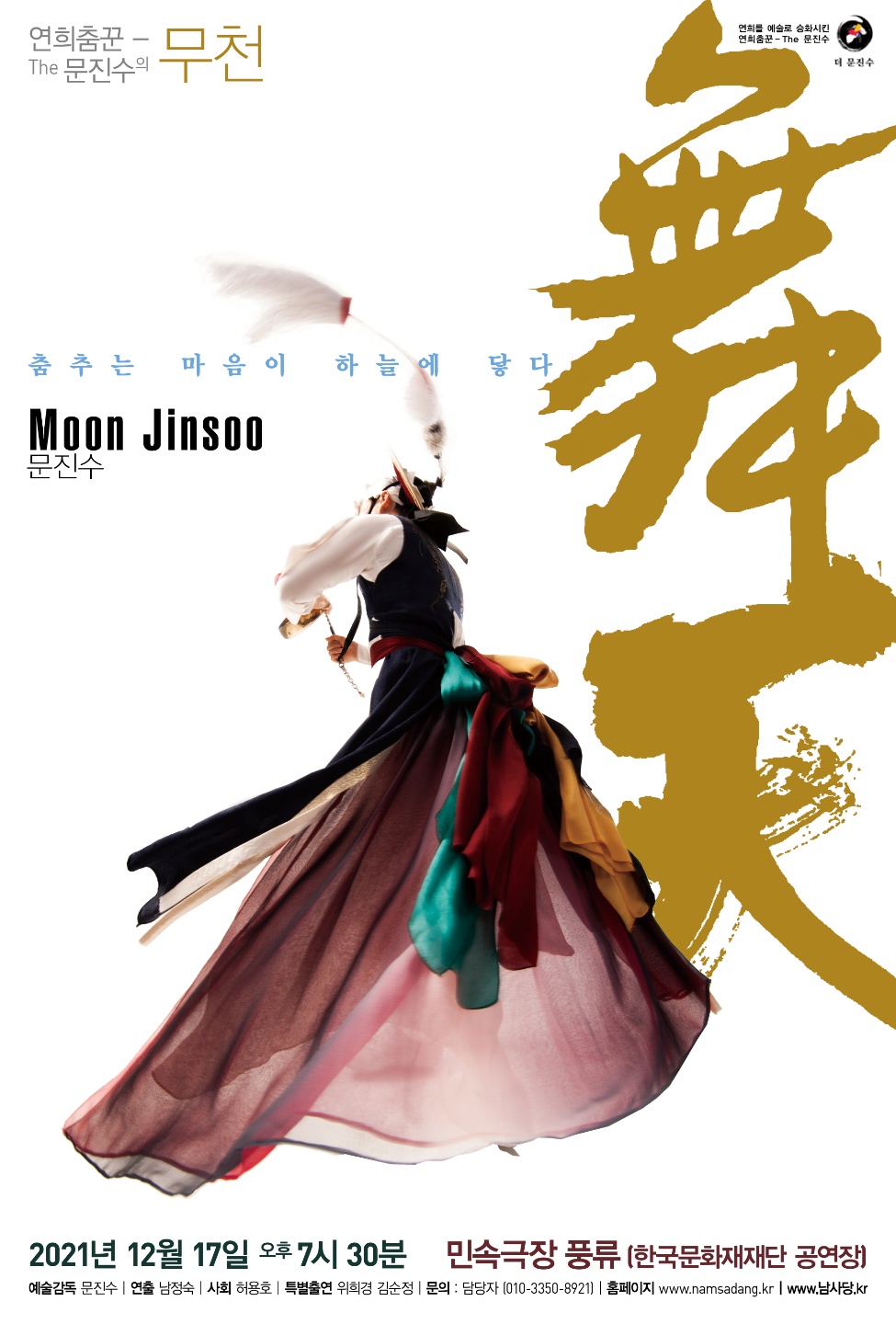 [플레이뉴스 문성식기자] ‘춤꾼들의 춤 선생’ 문진수가 12월 17일 오후 7시 30분 한국문화재단공연장 ‘풍류극장’에서 쇠춤·소고춤·설장구·열두발상모춤까지 연희 4종목 전통작품을 재창작 및 재구성한 격조 있는 무대 ‘연희춤꾼 The 문진수 - 무천舞天’을 선보인다.