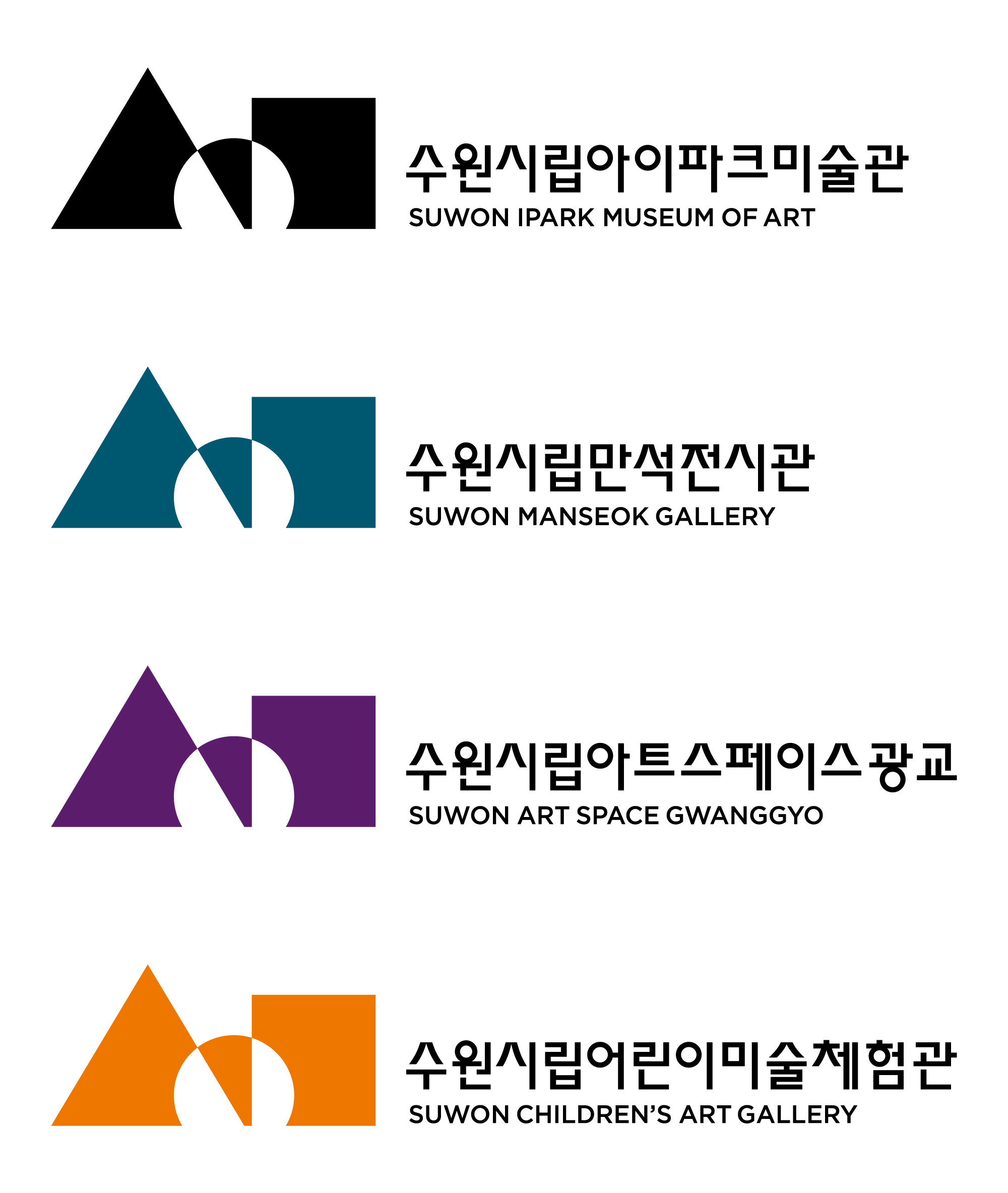 심벌은‘수원시립미술관’과 다채로움을 상징하는 삼각형․사각형․원형을 연결해 다양한 문화를 아우르는 미술관의 본질과 역할을 표현했다.