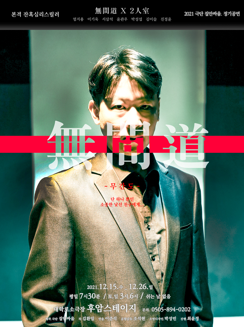 20211112금-무간도-포스터-박성섭2 두 작품은 중간 쉬는 시간 10분을 포함하여, 2시간20분 동안 진행되며, 특별한 연출 형식을 갖는다.