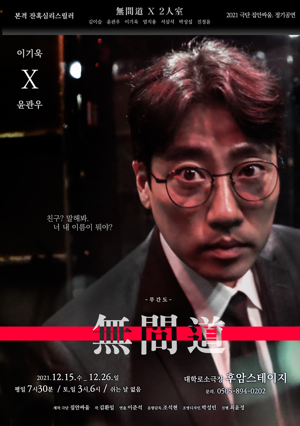 서울 종로구 대학로 소극장 '후암스테이지' 에서 오늘 12월 15일. 수. 부터 26일. 일.까지 공연되며,