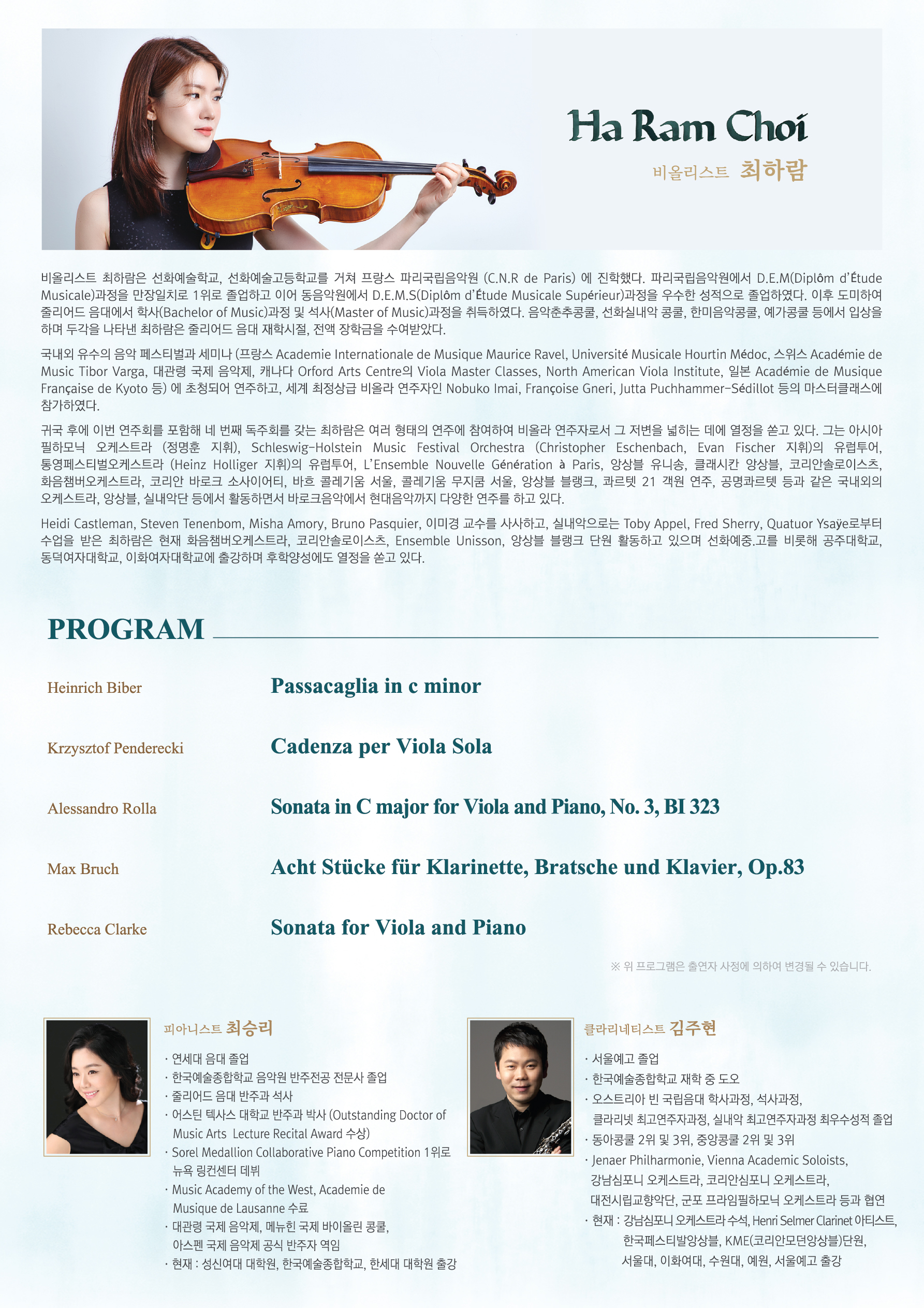 최하람 비올라 독주회 Ha Ram Choi Viola Recital