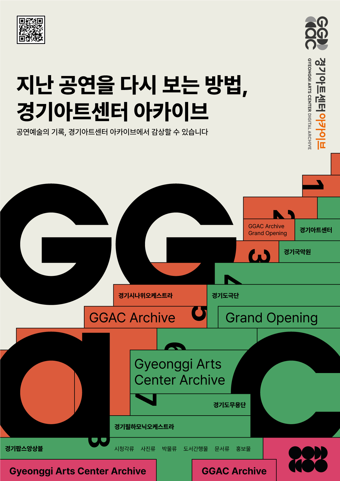 ‘경기아트센터 아카이브’는 개관 이후 30년간 축적된 공연예술자료를 총망라하여 디지털 자료의 형식으로 보존 및 공개하는 플랫폼이다.