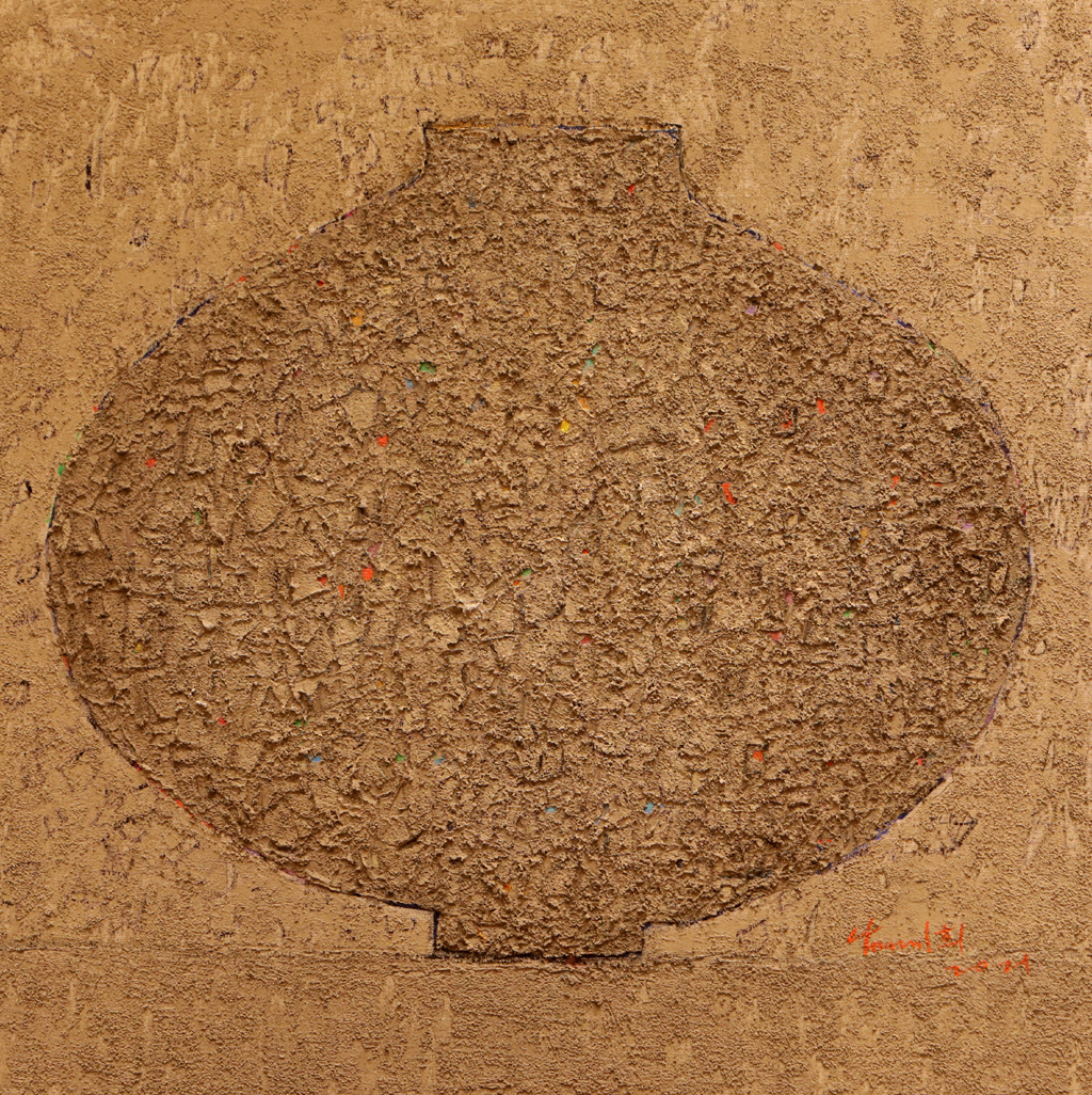 [플레이뉴스 문성식기자] 나이프로 바른 거친 모래 질감에 단색톤으로 전체를 채색하고 홈에 점을 찍듯 다양한 색으로 포인트를 주었다.