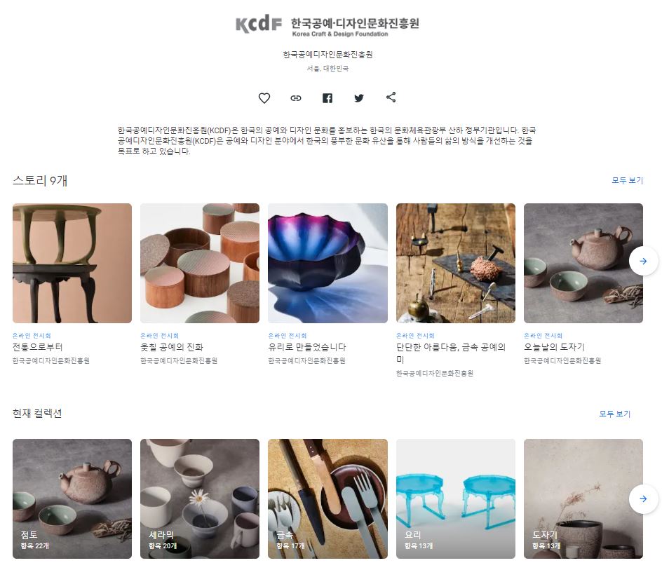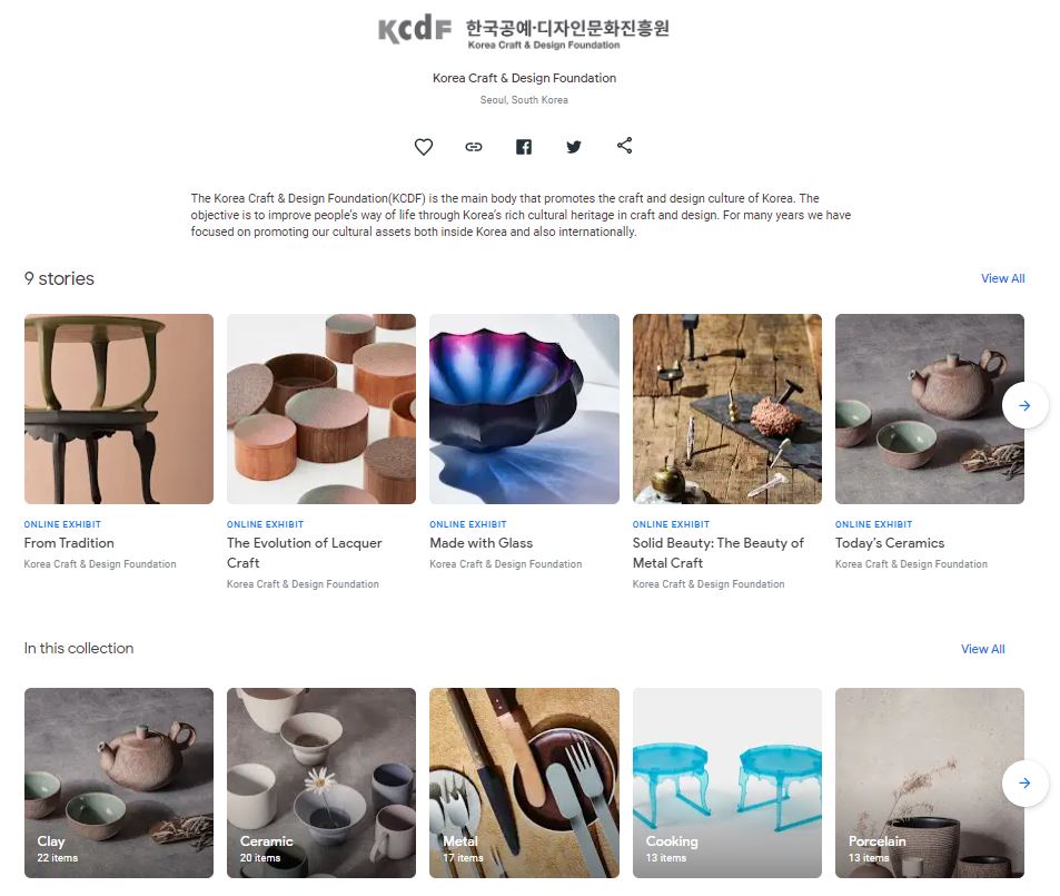 | 한국공예․디자인문화진흥원의 구글 아트 앤 컬처 온라인 전시 주제 |