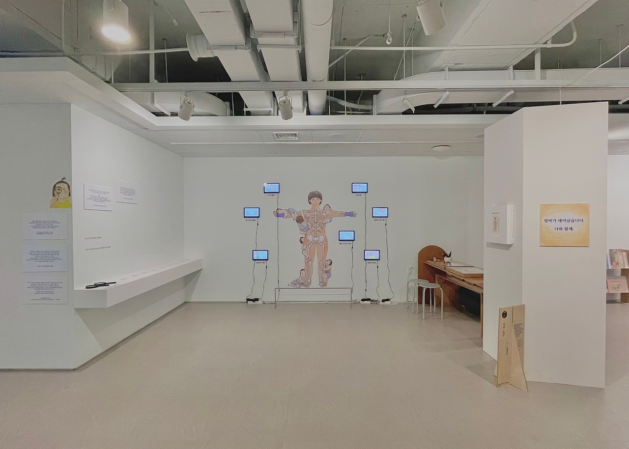 여기에 하루아침에 종이가 된 아빠의 몸을 종이와 색연필, 패브릭과 끈 등 다양한 재료로 직접 꾸며보는 코너, 그리고 무한한 사랑을 주신 할머니를 생각하며 가족과의 추억을 일기에 담아보는 코너가 마련됐으며, 관람객들은 언제 방문하든 직접 참여하며 두 작품 세계 속으로 빠져보게 된다.