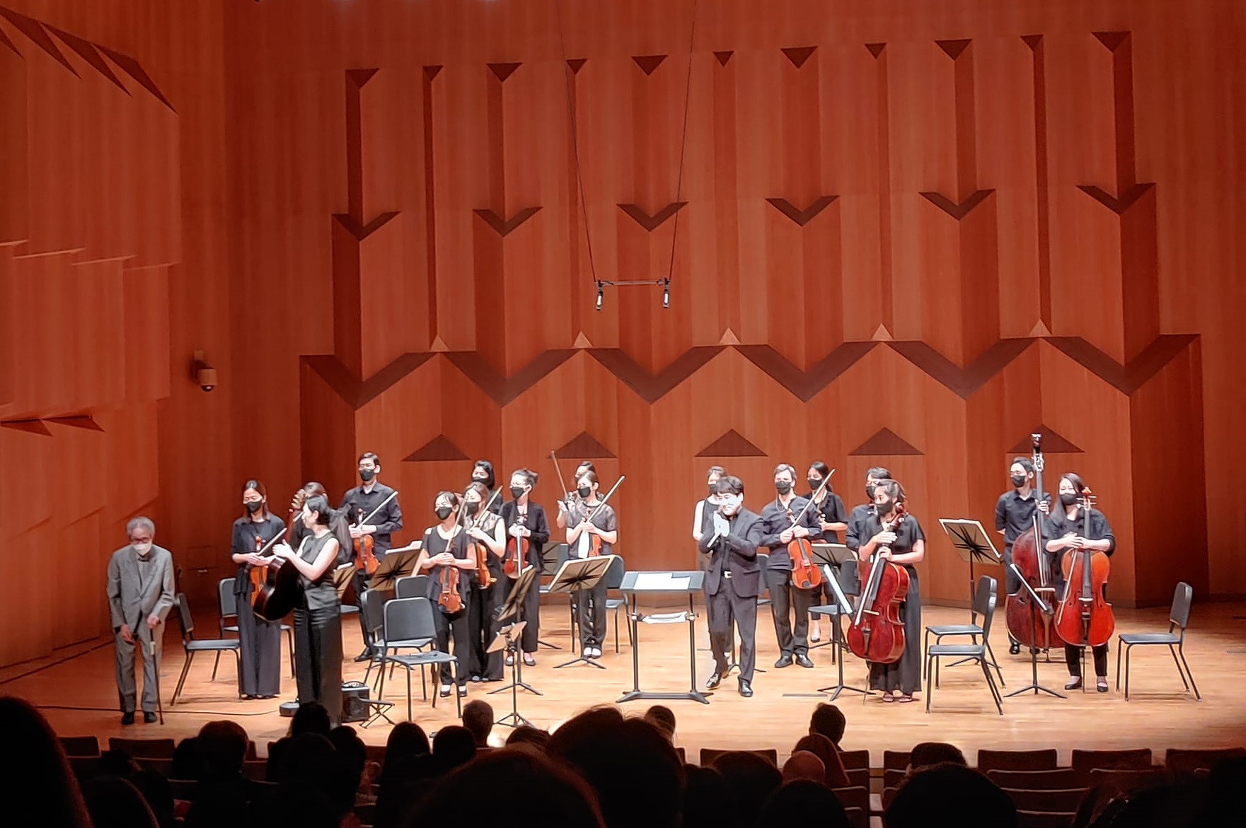 백영은의 <'내일의 주제' 기억에 의한 파사칼리아>(2010/2022)는 바이올린 솔로(김지현)의 6음 주제와 그 역진행이 합주를 이끄는 뚜렷한 현악적 색채가 좋았다. 바이올린 솔로가 주제를 노래하고 같은 목질 악기가 내는 현악합주 본연의 공명을 느낄 수 있었다. 중간부는 하모닉스로 엷고 날카로운 선율이 피어오른다. 부단히 움직이는 독주 바이올린 선율은 마치 오늘에 연결된 내일을 향하는 두려움에 찬 희망으로 보인다.