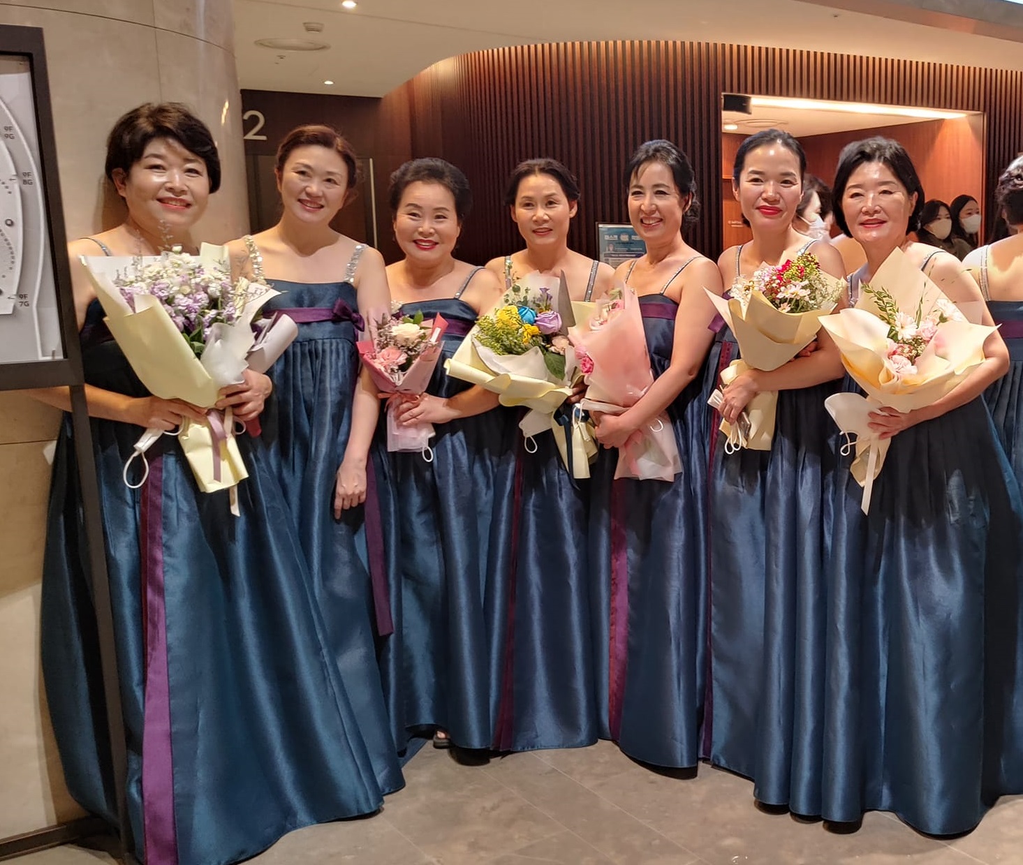 이들의 의지가 모습에서도 느껴졌는데, '상화의 라일락(운경遊(유)앙상블 위촉곡, 문무학작시 이순교 작곡)'의 백색이 느껴지는 순수한 모음부터, '신고산 타령'과 '밀양아리랑'에서 중간중간 깜찍한 율동으로 포인트도 주고, 각 곡 사이에 대형을 바꿀때 피아노 전주로 이끌어 적절히 시간배치를 했기 때문에 대구중구시니어클럽이 운영하는 이 단체의 저력을 느낄 수 있었다.