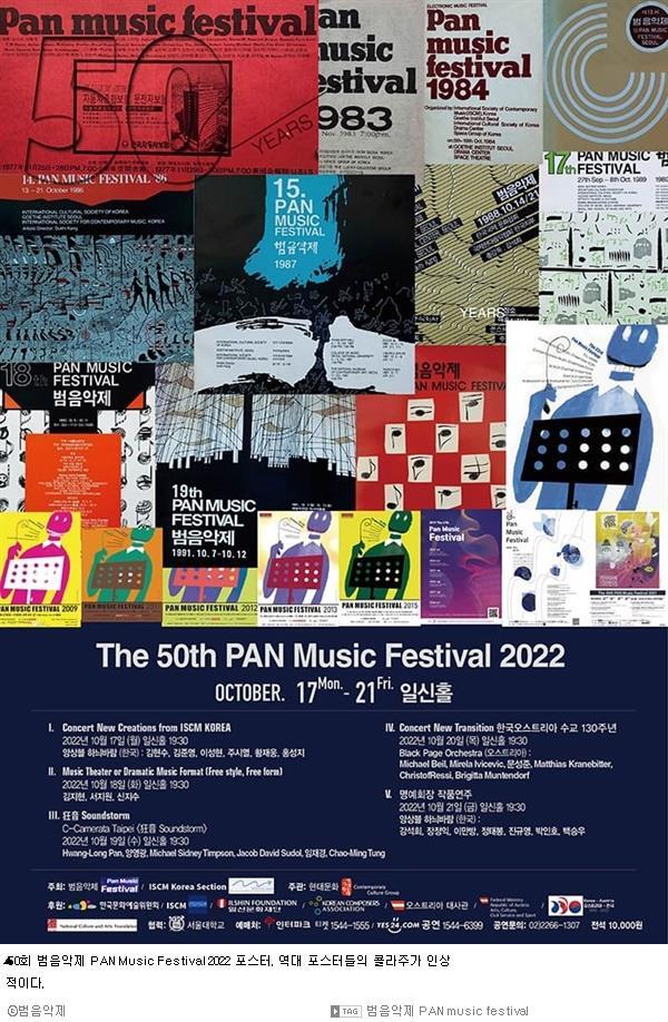 지난 10월 17일부터 21일까지 5일간 저녁7시 서울 한남동 일신홀에서 PAN music festival2022가 각일 ISCM Korea 공모작품, 신지수, 서지원, 김지현의 음악극, 앙상블 C-카메라타 타이페이 연주로 한국과 대만의 중견작곡가 작품연주, 한국-오스트리아 수교130주년 음악회로 'BLACK PAGE ORCHESTR'와 함께한 전자음악연주 등으로 구성되며, 5일간 30명 작곡가의 현대음악작품이 연주되었다.