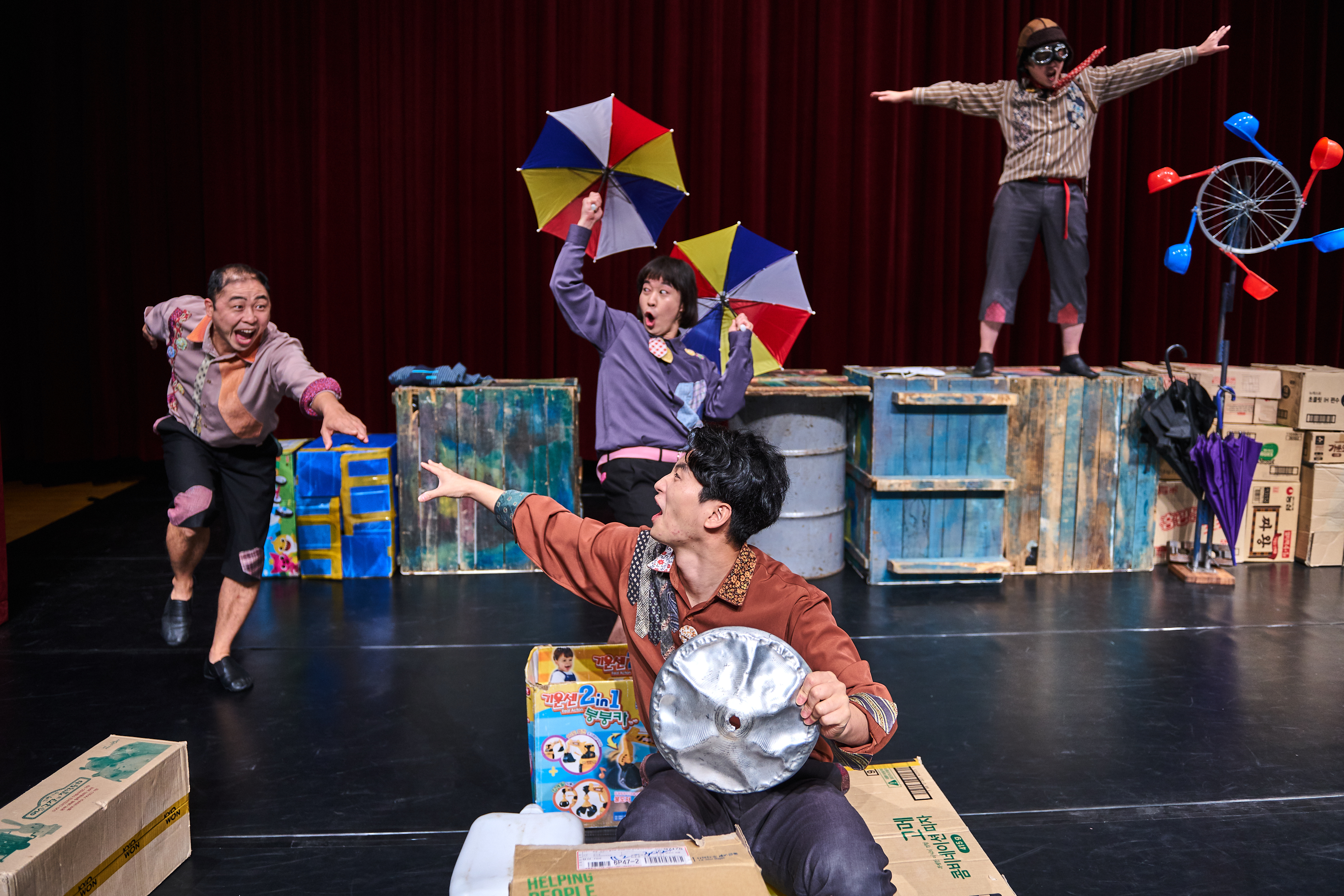 연극 '정크,클라운' 놀기를 무척 좋아하는 광대(Clown)들은 끊임없는 놀이와 장난으로 서로에게 웃음과 즐거움을 준다. 버려진 드럼통, 자전거핸들, 깨진 바가지, 찌그러진 냄비와 함께 노는 것은 마치 놀이동산의 미로 탐험처럼 즐겁다. 자전거를 타고 들판의 바람을 신나게 가르며 달리고, 선풍기 날개로 만든 헬리콥터로 하늘을 날면서 전쟁놀이도 하고, 고장 난 청소기와 호스를 이용하여 태풍과 물을 만들고.... |