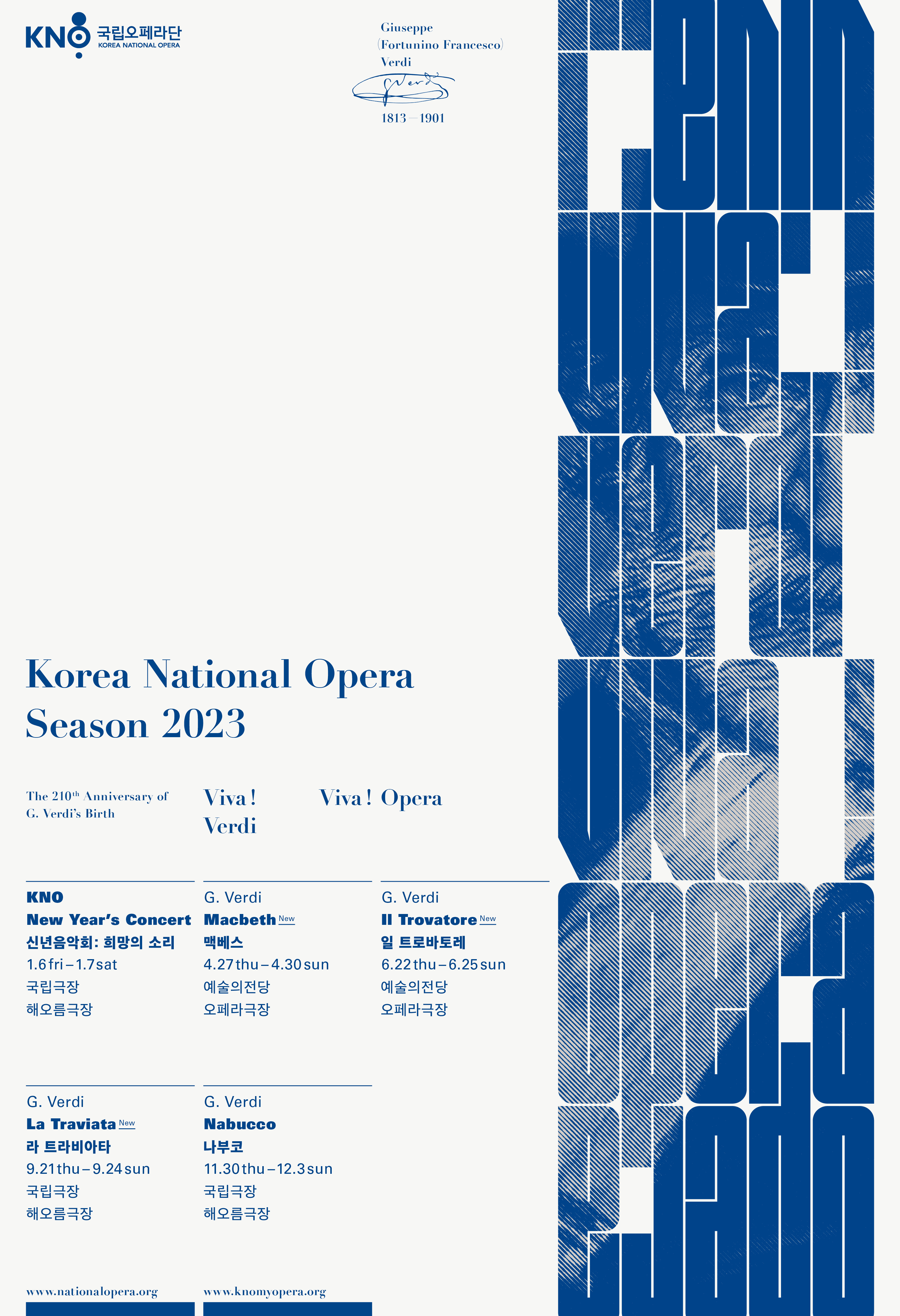 국립오페라단 2023년 정기공연 발표‘오페라의 제왕’ 베르디 탄생 210주년 기념비바 베르디! 비바 오페라! '맥베스' '일 트로바토레' '라 트라비아타' '나부코' 새로운 베르디, 새로운 국립오페..