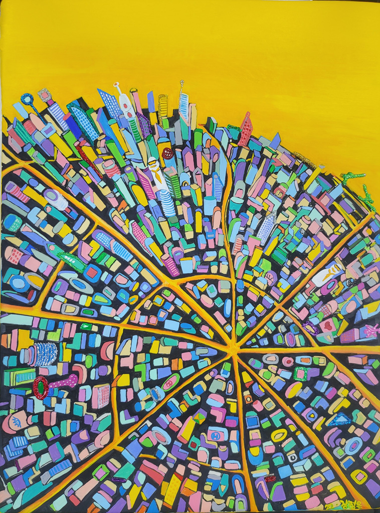 작품명 "COLOR OF CITY" 시리즈는 창조자를 자신으로 하여 세상을 내려 보고 각각의 개성과 인생들이 블록처럼 별개인 것처럼 보이지만 조화롭게 구성되어 아름다운 도시를 만들었다.