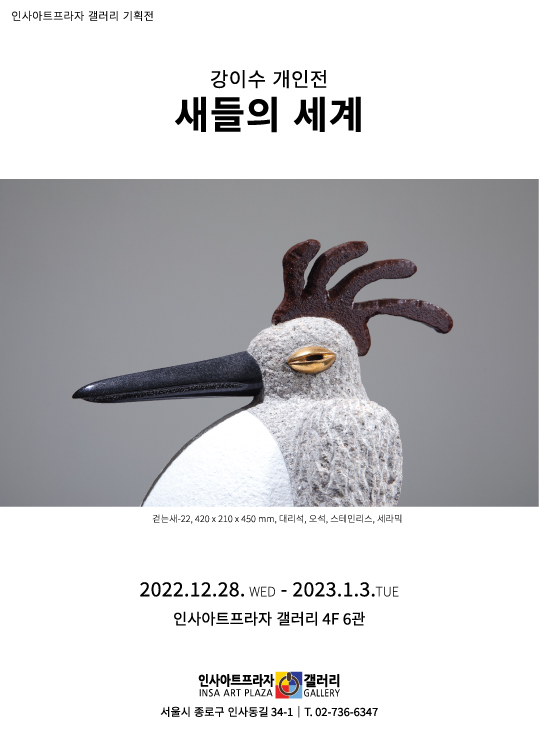 인간 군상들을 새에 반영해 다양한 재료로 구현해온 강이수 작가의 개인전 ‘새들의 세계’가 12월 28일부터 2023년 1월 3일까지 서울 종로구 인사동길 인사아트프라자 갤러리(회장 박복신) 4층 6관에서 열린다.