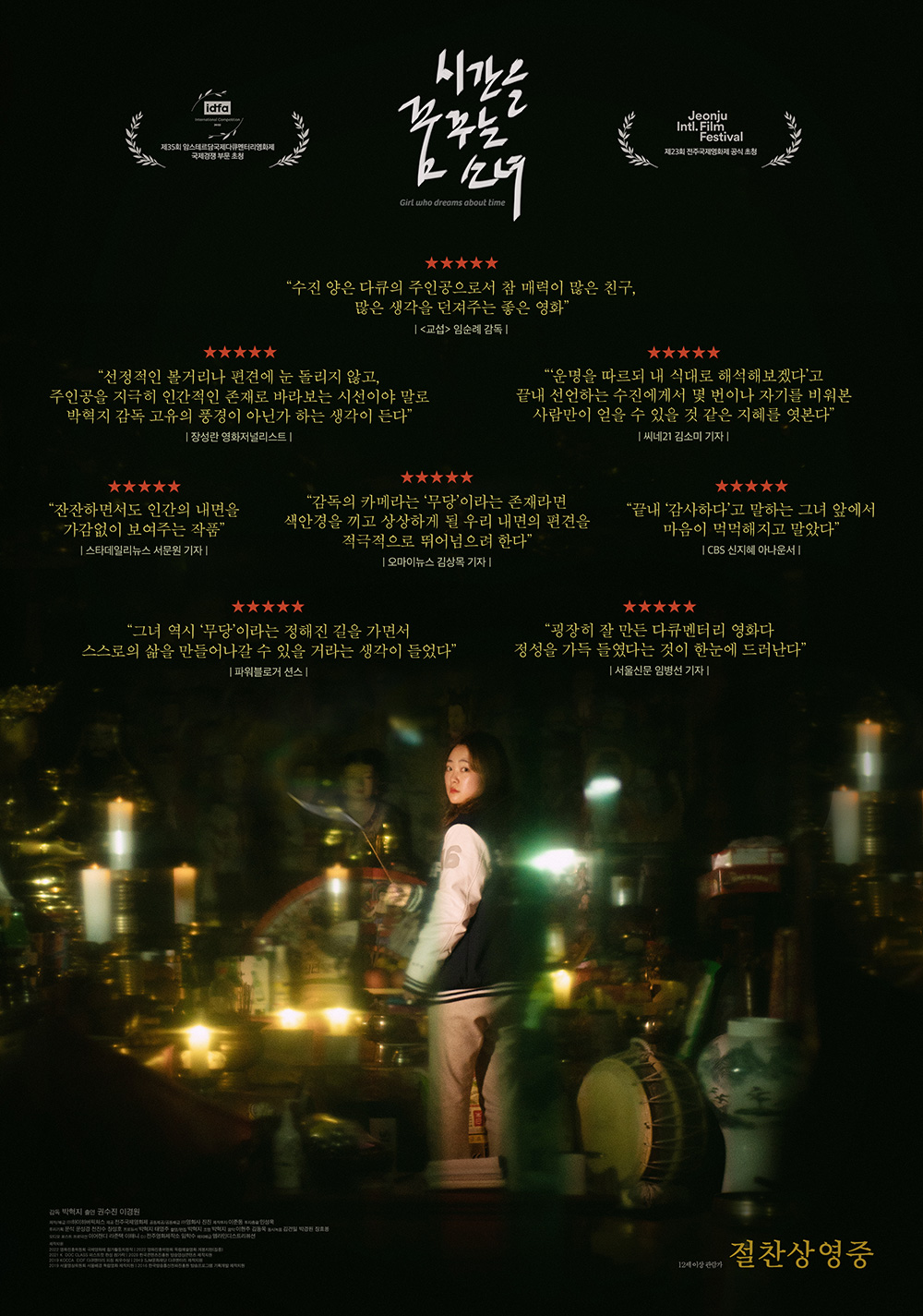 '춘희막이', '행복의 속도' 등 메시지와 작품성을 두루 갖춘 웰메이드 작품을 꾸준히 선보이며 한국 다큐멘터리를 든든하게 이끌어 나가고 있는 박혁지 감독의 신작 '시간을 꿈꾸는 소녀'는 무녀로 살아온 주인공 수진의 고민과 선택을 통해 운명에 대한 새로운 메시지와 통찰을 선사하며 많은 관객들에게 용기를 전했다.