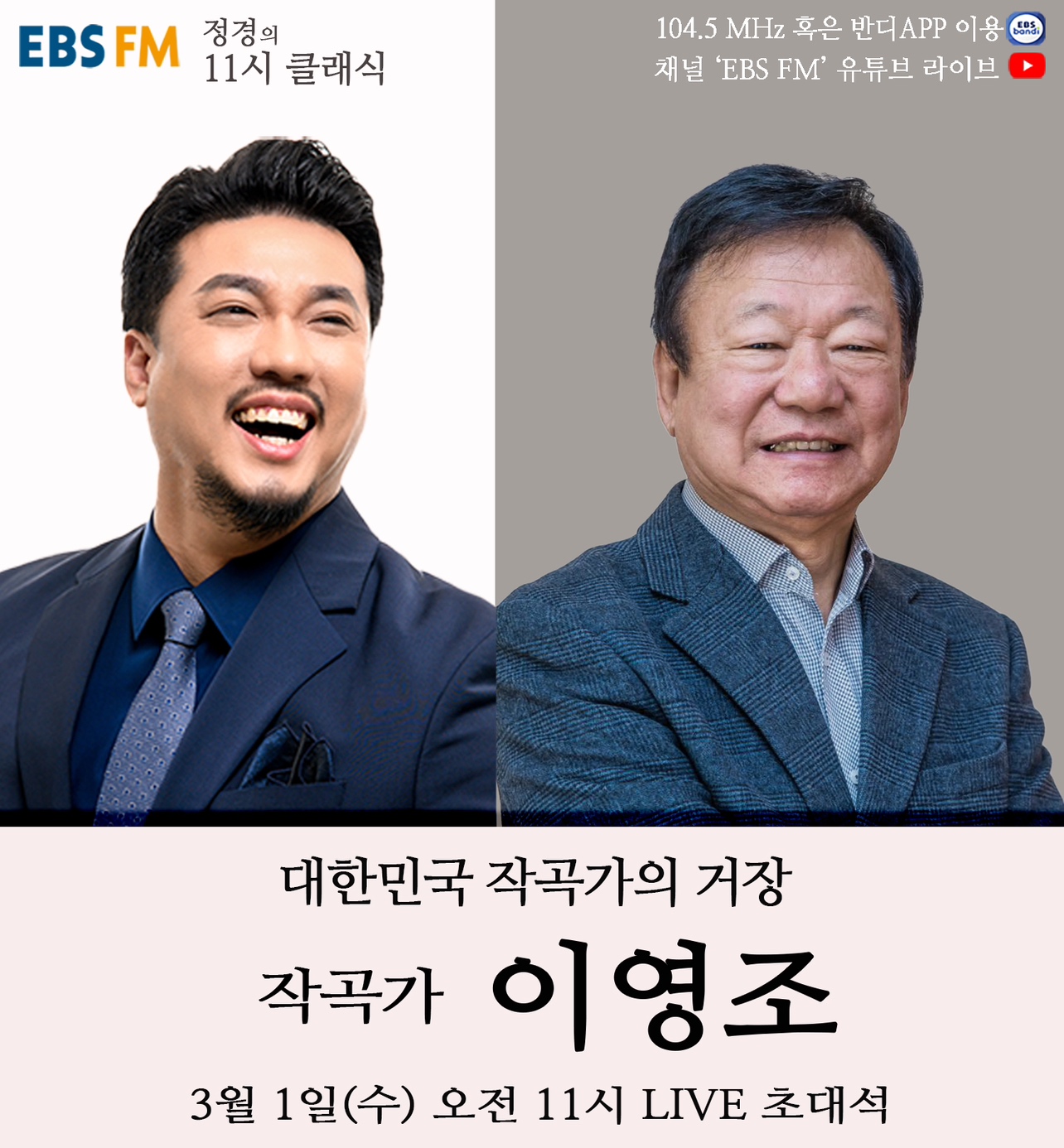 매주 수요일 코너인 '수요초대석'에서는 클래식 음악계의 명사들을 초대한다. 3월 1일에는 제104주년 삼일절을 맞아 서양음악과 한국 전통음악, 과거와 현대 기법을 혼합한 혼합주의적 양악전통을 계승한 작곡가 이영조 교수가 출연해 음악과 인생 이야기를 들려줄 예정이다.