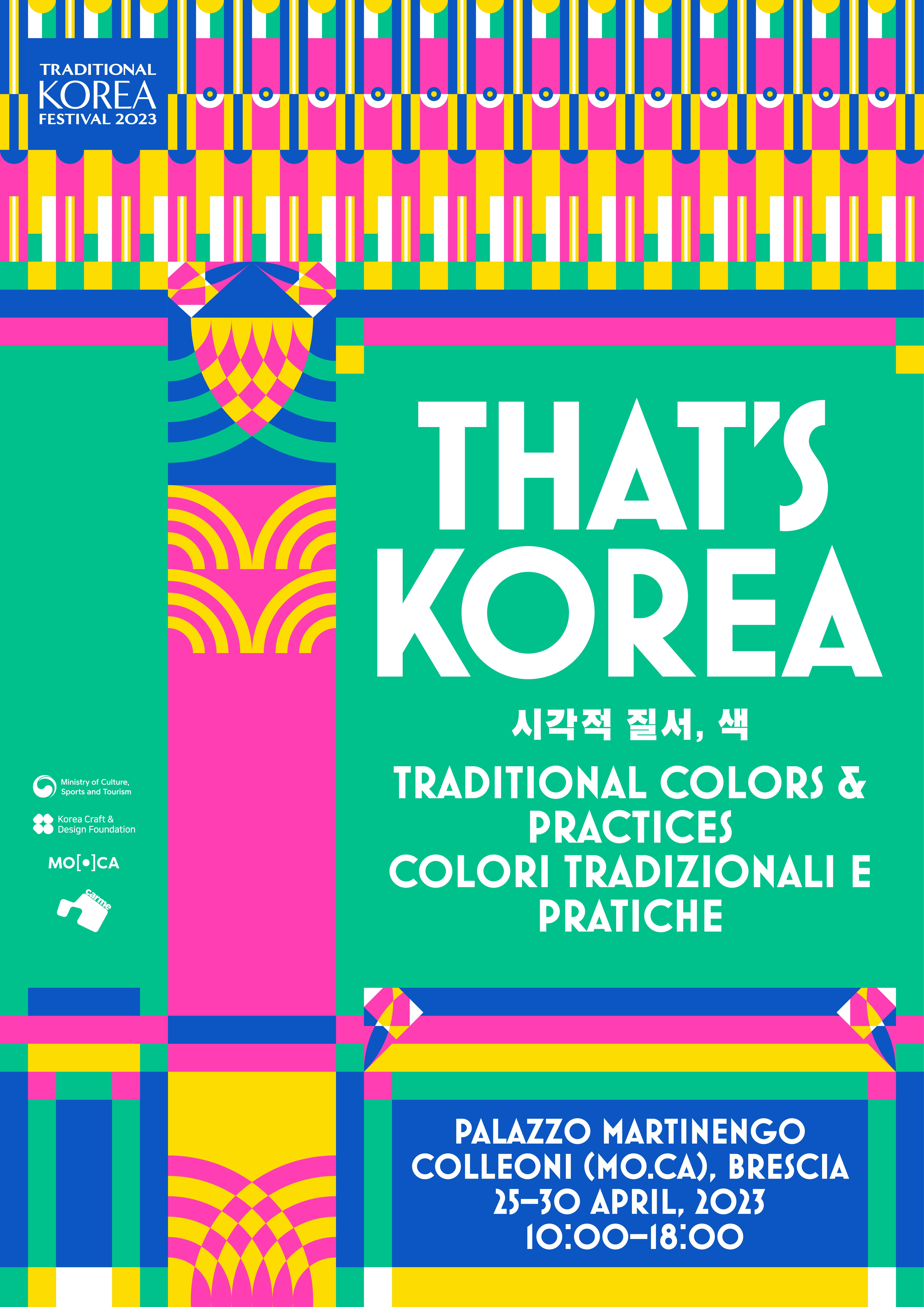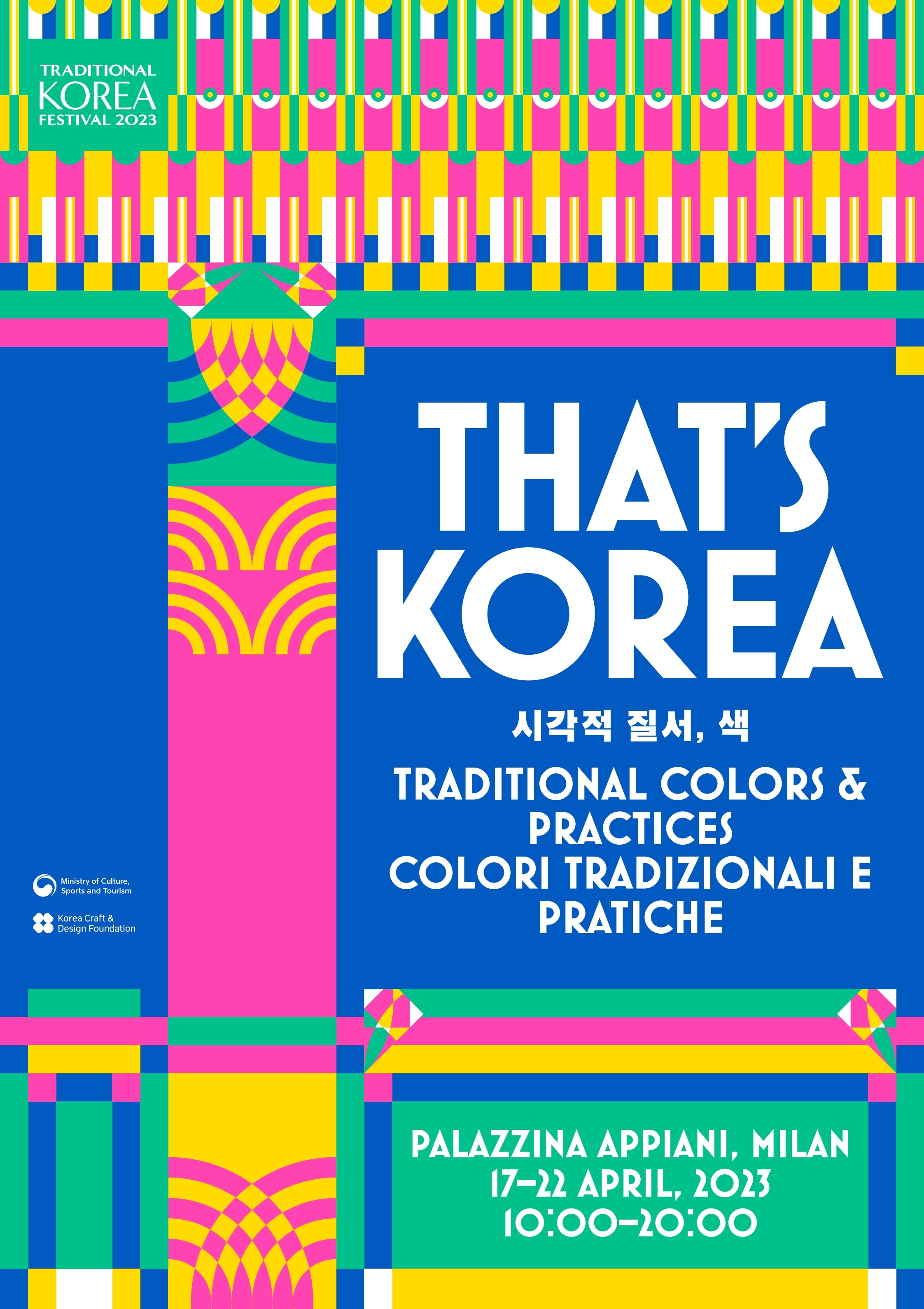 4월 17일부터 22일까지 밀라노 팔라치나 아피아니(Palazzina Appiani)에서 열리는 ‘2023 한국 전통문화 페스티벌’의 기획전 '시각적 질서, 색'은 한국 고유의 칠인 단청의 규칙적인 구조와 화려한 색 그리고 패턴의 ‘시각적 질서’를 현대적으로 표현한 전시로 구현된다.
