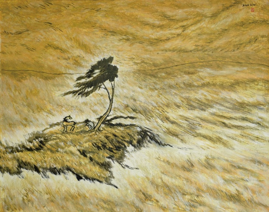 거센 바람이 부는 ‘제주의 빛’을 담은 작가의 작품 중 ‘난무’(1997)와 ‘이대로 가는 길’(2006)은 2006년부터 10년간 미국 국립 스미소니언 한국관에 당시 생존 동양인 작가로는 최초로 상설 전시돼 화제가 됐다.