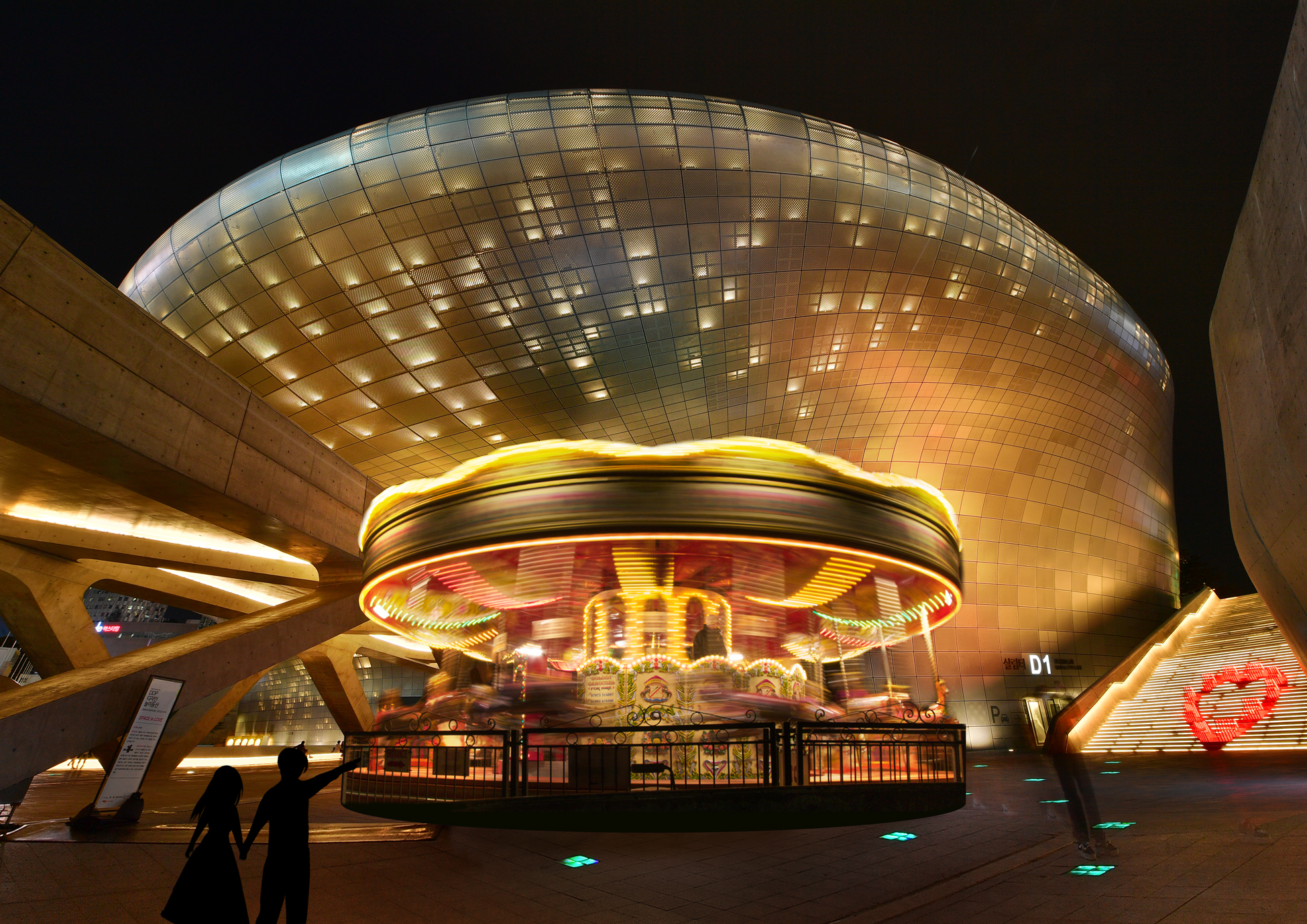 행사기간 내 지정된 장소마다 도장을 받아오는 ‘스탬프 랠리’ 이벤트에 참여해도 회전목마 탑승권을 받을 수 있다. 유려한 DDP 외형과 어우러진 회전목마를 배경으로는 인생 사진을 찍을 수 있다.