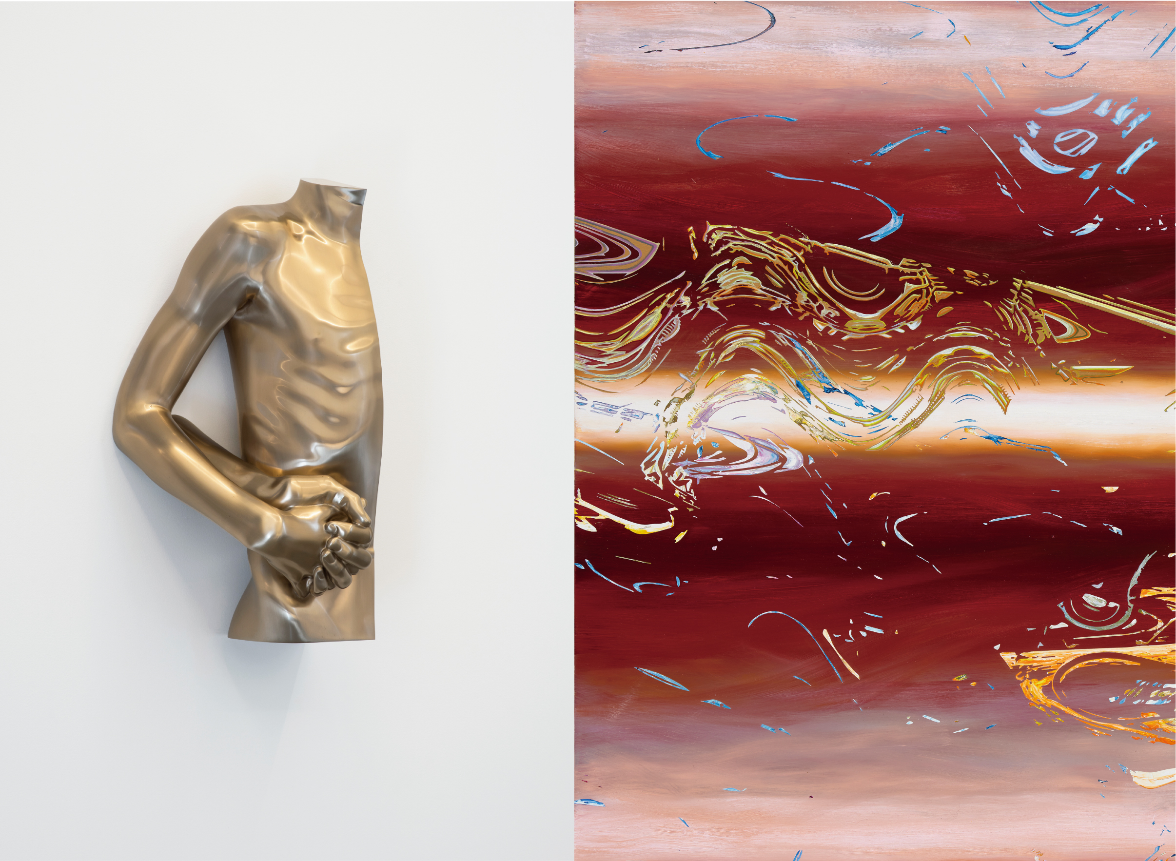 찰나적인 물질적 세계를 초월하는 도상학적 요소들을 활용하는 두 작가는 왜곡과 초현실적 진실을 통해 존재를 표현한다. 각자의 고유한 경험을 바탕으로 개념적 은유를 사용하여 인간의 조건을 재현하며, 변형을 통해 숨기고, 드러내고, 탐구하길 지속한다.