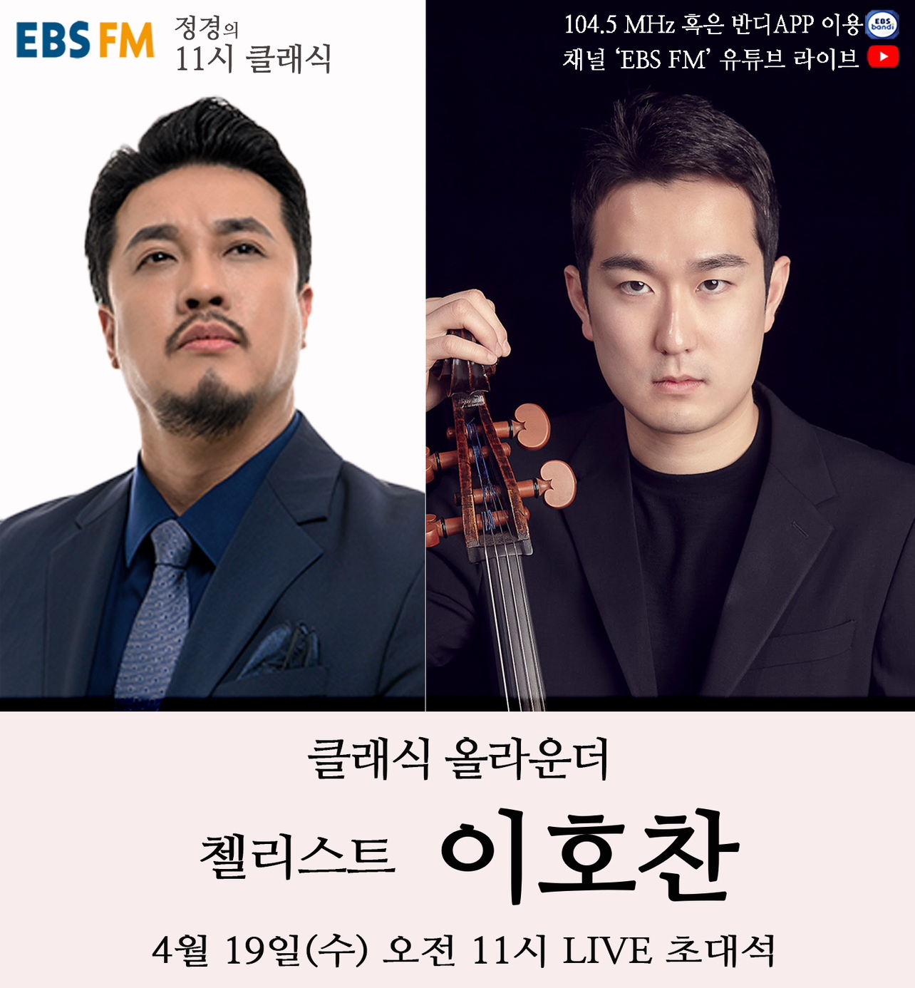 매주 수요일 코너인 '수요초대석'에서는 클래식 음악계의 명사들을 초대하고 있다. 4월 19일에는 2022년 10월 피아니스트 박상욱과의 협연으로 데뷔 앨범 '편지'를 발매한 첼리스트 이호찬이 출연해 라이브 연주와 함께 자신의 음악과 인생 이야기를 들려줄 예정이다.