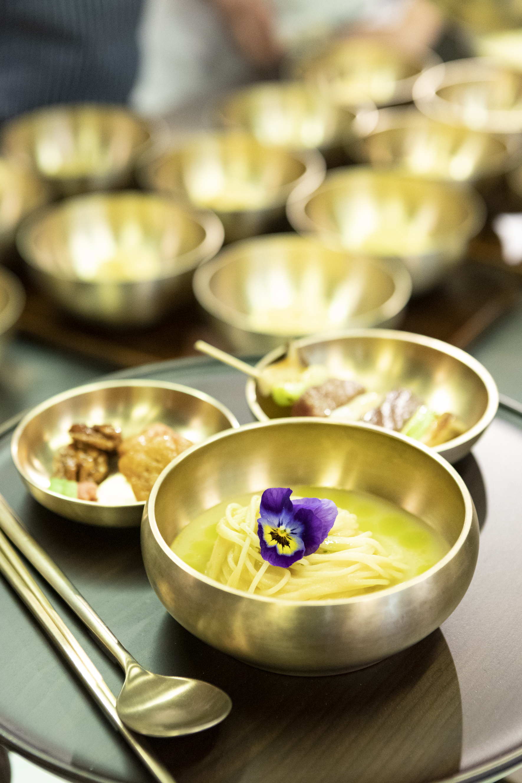 참석자들은 즉석에서 조리한 음식을 다 함께 시식하며 한식의 맛과 멋을 즐겼다. 특히 무채색의 콩국수 위에 알록달록한 꽃으로 포인트를 준 부분이 무척 조화로와, 마치 이탈리안 파스타의 토핑과 닮았다며 반가워했다.