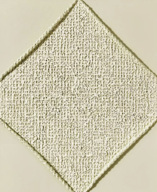 특허기술까지 받을 정도로 무수히 갈고 닦은 타공기법 위에 노끈을 엮고 그 위에 직접 제작한 닥종이를 섞어 물성이 도드라지는 물감을 쌓아올려 우주 속 점 같은 인간의 존재와 그 속에서 수없이 피어나는 인연들, 그 접점에서 끊임없이 발생되는 다양한 삶의 이야기들을 담았다.