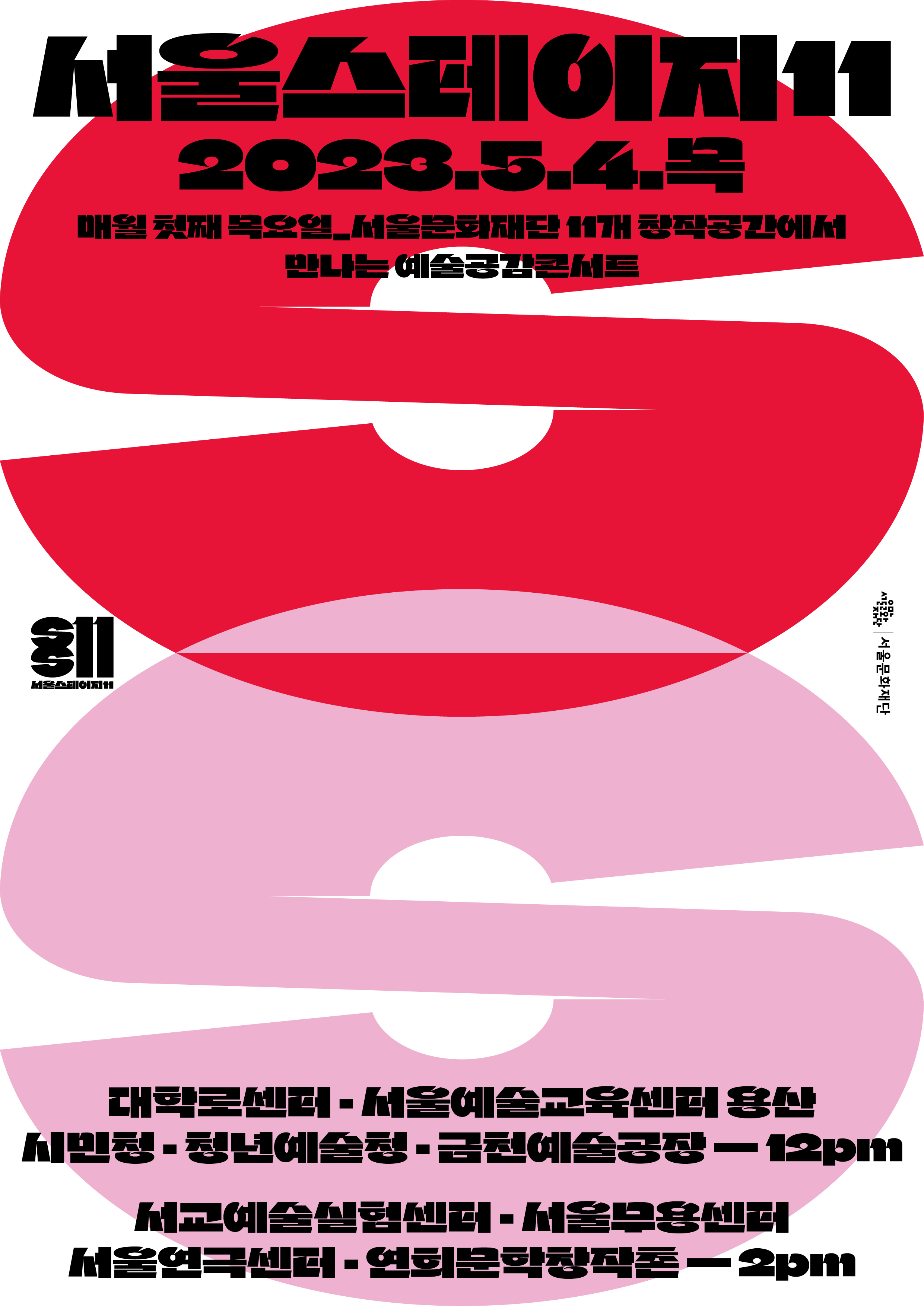 [플레이뉴스 문성식기자] 서울문화재단(대표이사 이창기)이 매월 첫째 목요일 서울문화재단 11개 창작공간에서 진행하는 예술공감 콘서트 '서울스테이지11' 5월 공연을 오는 4일(목) 낮 12시 서울문화재단 대학로센터, 서울예술교육센터 용산, 청년예술청, 시민청과 오후 2시 서울연극센터, 서울무용센터 등 9개 공간에서 개최한다.