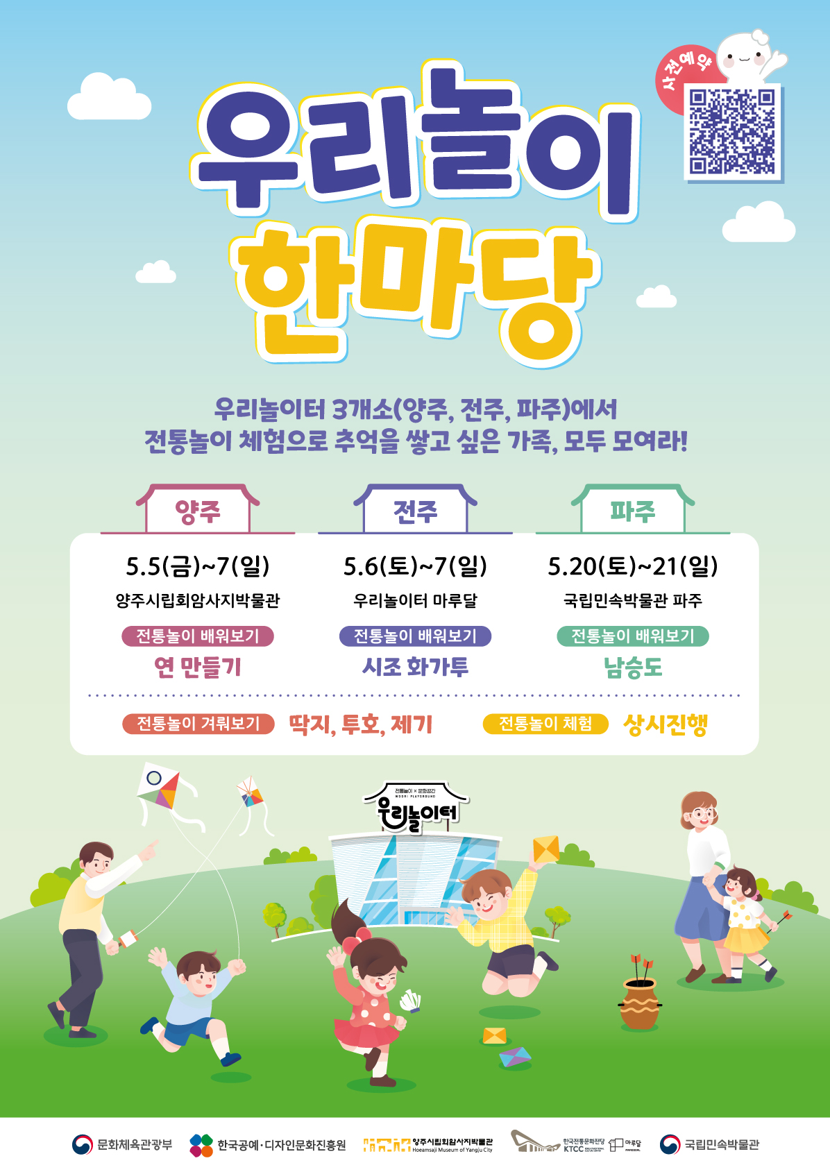 - 5월 중 우리놀이터 양주··전주··파주서 봄맞이 전통놀이 체험 행사 운영