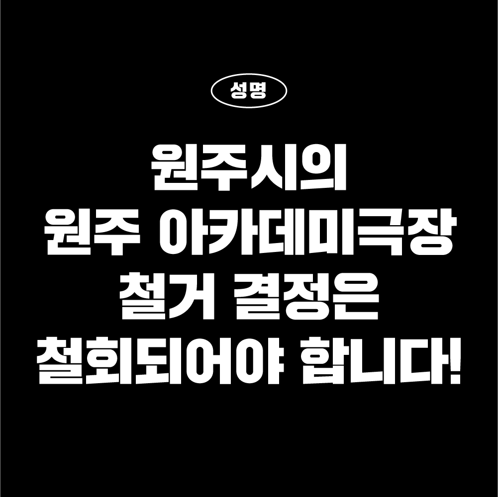 저희는 지난해 1월, 원주시가 오래된 극장을 인수해 문화공간으로 바꾸겠다는 소식에 부러운 마음을 숨길 수 없었습니다. 안타깝게도 대부분의 도시에서 오래된 영화관은 살아남지 못했습니다. 부끄럽게도 유서 깊은 극장을 보존하는 데 시도, 시민들도 함께하지 못했습니다. 그런 점에서 오래된 극장을 매입한 원주시의 결정과 영화를 사랑하는 원주 시민들의 노력에 존경을 표합니다. 원주시의 극장 철거 결정은 이런 노력을 수포로 돌리는 일입니다.
