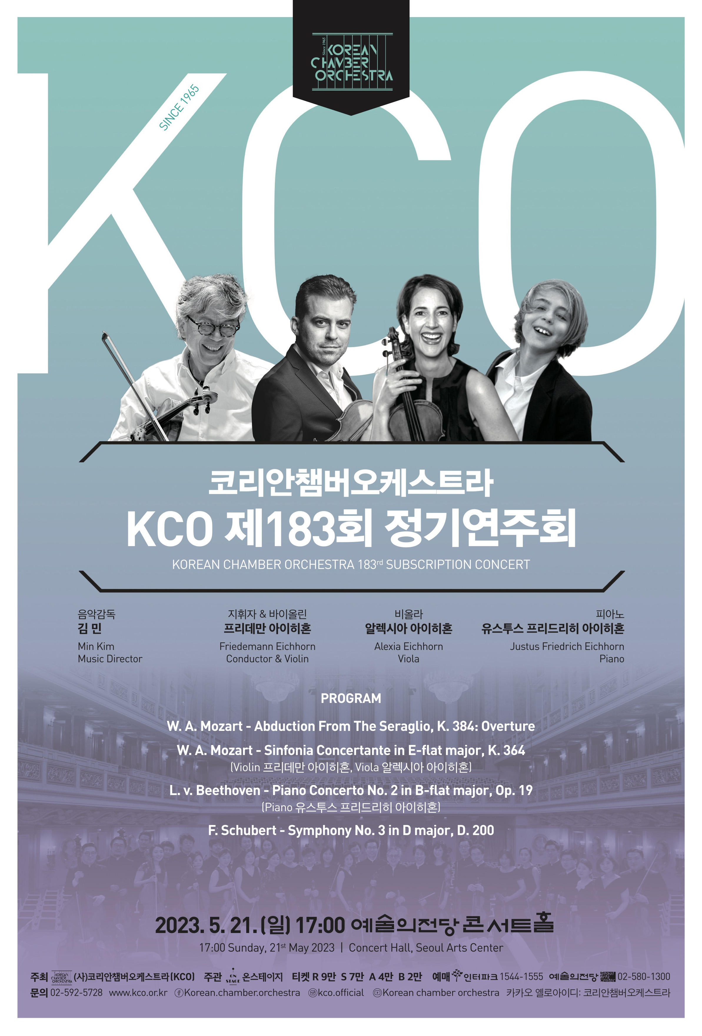 한국을 대표하는 챔버오케스트라인 코리안챔버오테스트라는 서양 클래식의 본고장인 독일의 정통 클래식 가문 출신이자 존경받는 독일 음악가 프리데만 아이히혼과 알렉시아 아이히혼 부부, 그리고 그의 자녀 유스투스 프리드리히 아이혼이 협연자로 함께한다.