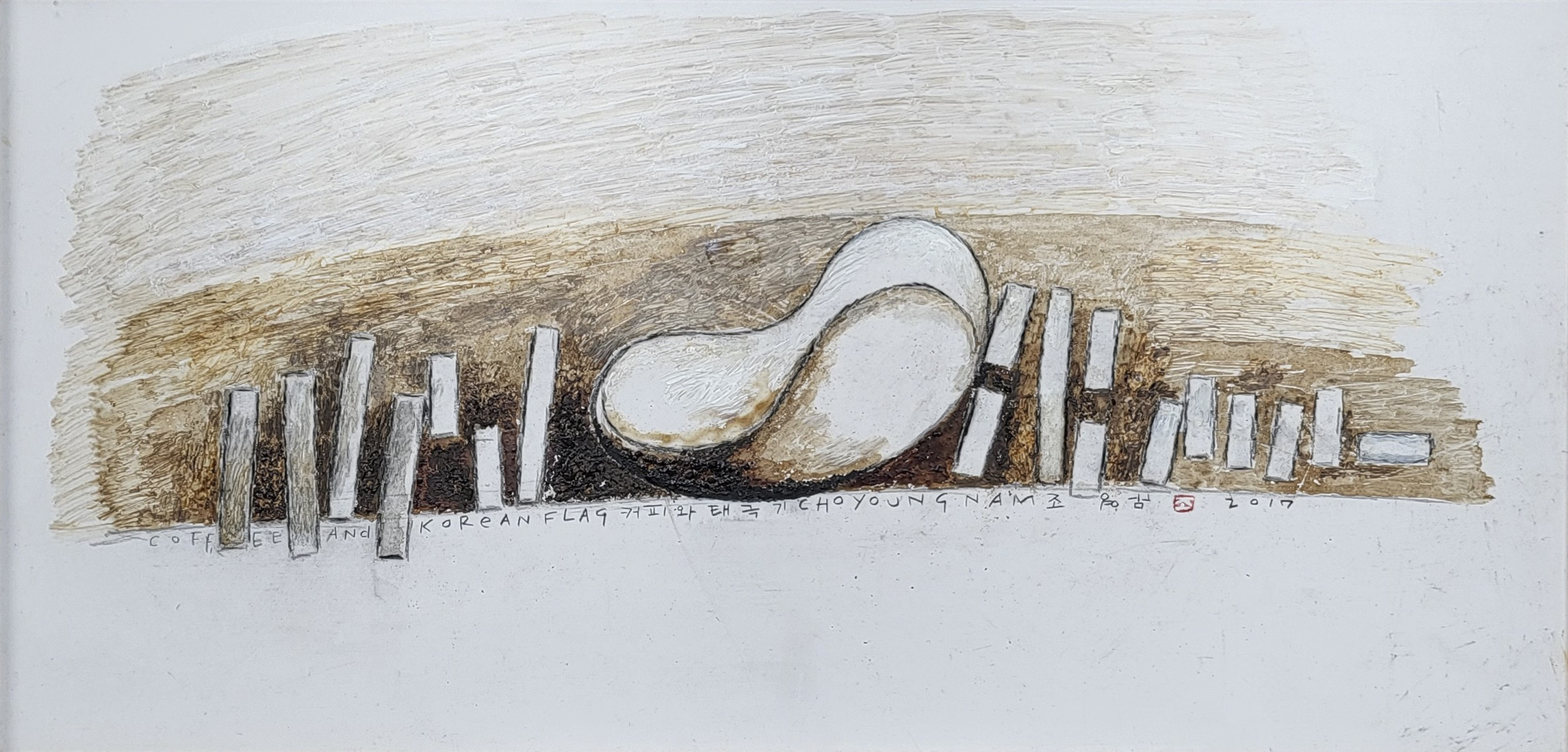 타국에서 화투라는 매개체가 우리민족애와 동족애, 향수를 느끼게 만드는 기표와 기의 역할을 하고 있었다. 작가에게는 그때부터 화투는 인생사의 기호이자 희노애락의 표현요소가 되었다고 한다. 그로부터 바둑, 태극기, 유명인사 등 우리생활상과 밀접한 소재들을 이용한 작품으로 확장되어 갔다.