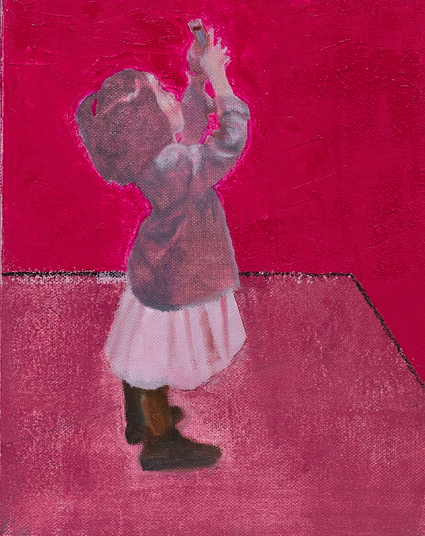 그래서일까. 아이가 존재하는 그림 하나하나는 비현실적인 장치로 꾸며진다. 복고적인 향수를 자극하는 미묘한 분위기가 마치 투명한 베일처럼 드리워져 있다. 아이가 존재하는 상황에 관한 설명은 없고, 다만 무언가 흐릿한 이미지가 화면을 덮고 있다. 그처럼 모호하게 처리되는 이미지는 아이를 현실적인 공간으로의 진입을 차단하는 장치이다.