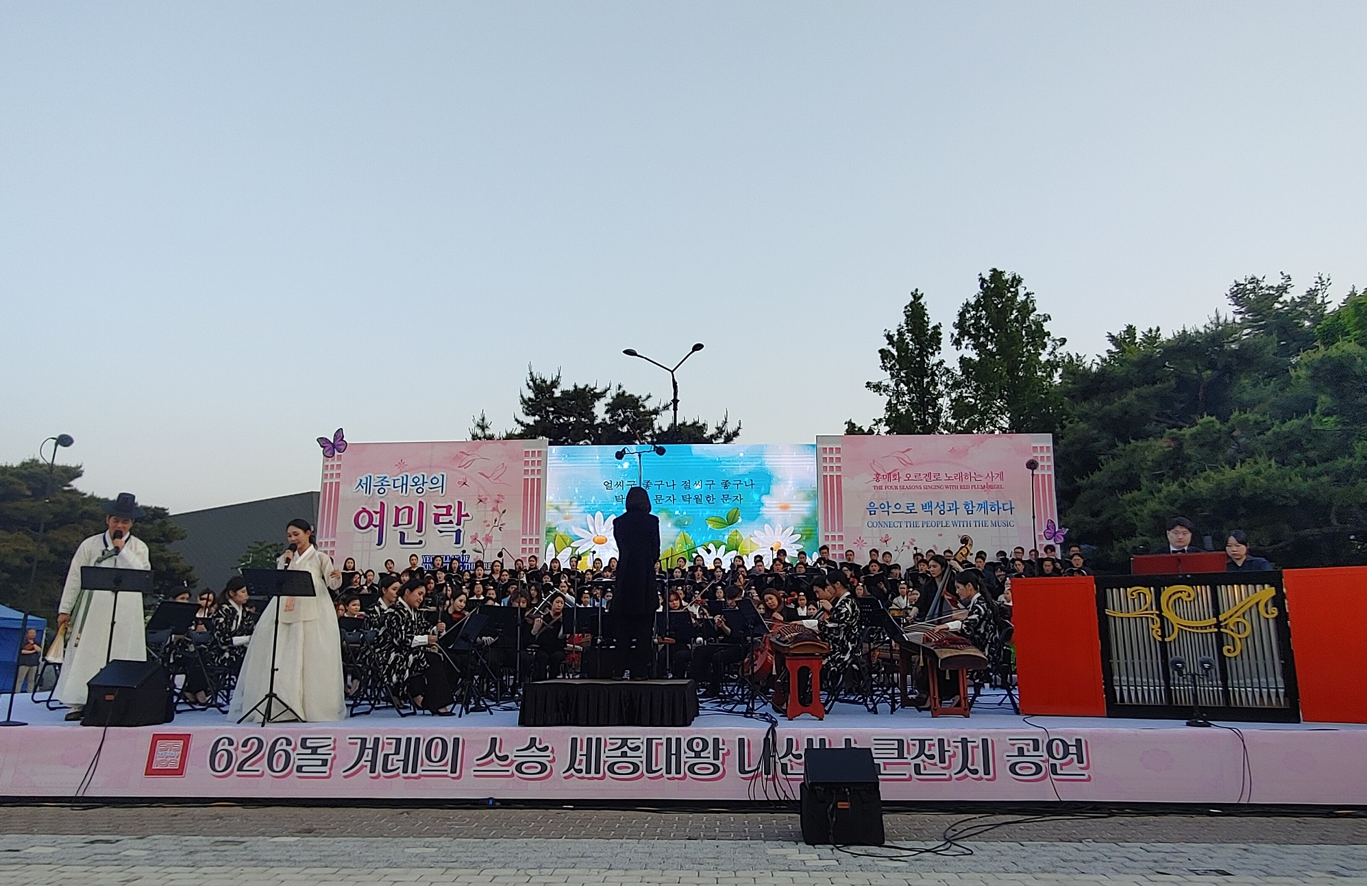 [플레세종대이뉴스 박순영기자] 세종대왕 나신날 큰잔치가 청와대 분수대 광장에서 지난 15일 오후 5시, '세종대왕의 여민락-홍매화 오르겔로 노래하는 사계' 공연으로 열렸다.