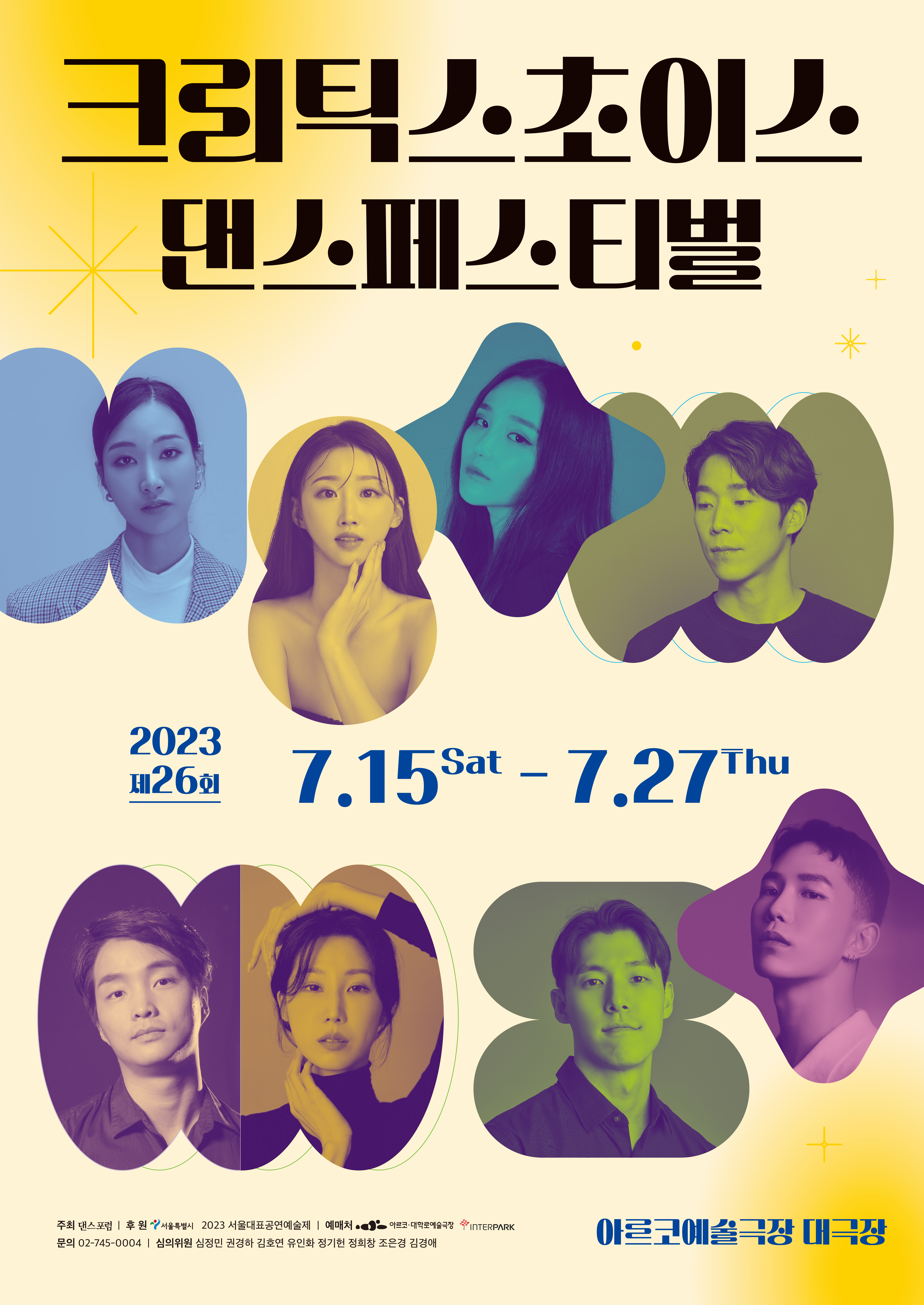 [플레이뉴스 문성식기자] 춤 전문지 월간 댄스포럼이 주최하는 '제26회 크리틱스초이스 댄스 페스티벌 2023'은 7월 15일부터 7월 27일까지 서울 대학로 아르코예술극장 대극장에서 펼쳐진다.