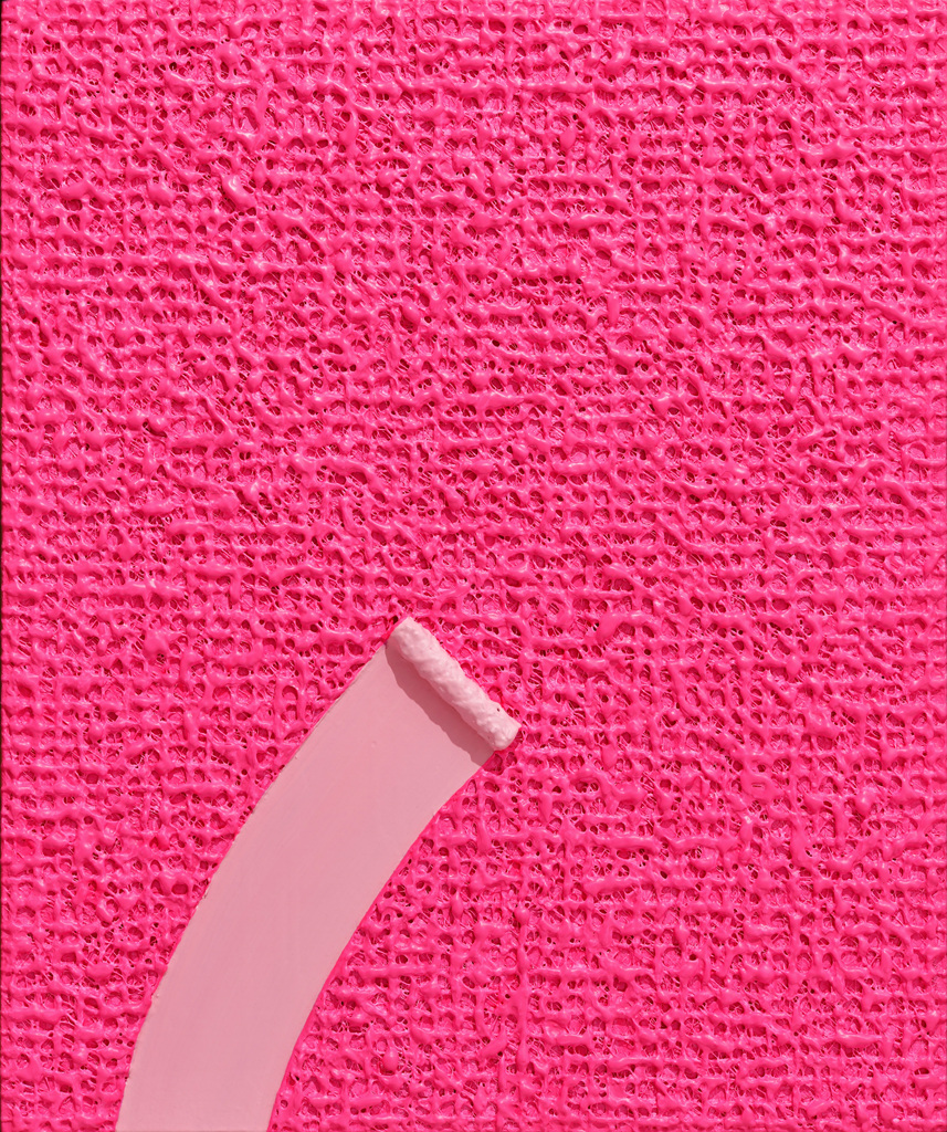 닥나무 한지를 물에 불려 만든 섬유질을 혼합해 만든 재료는 화면 위에 독특한 마티에르를 남기고 이 위에 한국 전통 오방색이 덧칠해져 이희돈 특유의 한국적이면서도 세련된 모던한 미감으로 구현된다.
