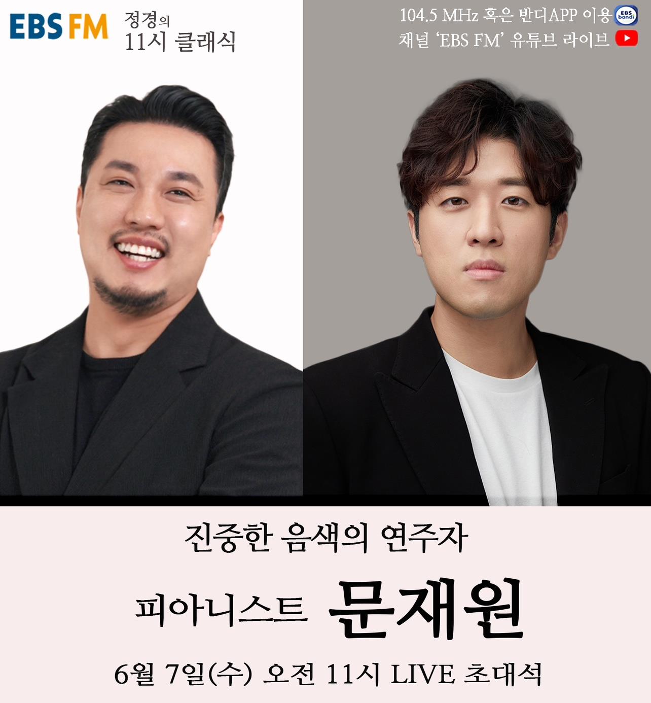 매주 수요일 코너인 '수요초대석'에서는 클래식 음악계의 명사들을 초대한다. 6월 7일에는 클래식은 물론 다양한 장르에서 활발하게 활동하며 많은 팬층을 보유하고 있는 피아니스트 문재원이 출연, 라이브 연주 및 인생 이야기로 감동을 전할 예정이다.