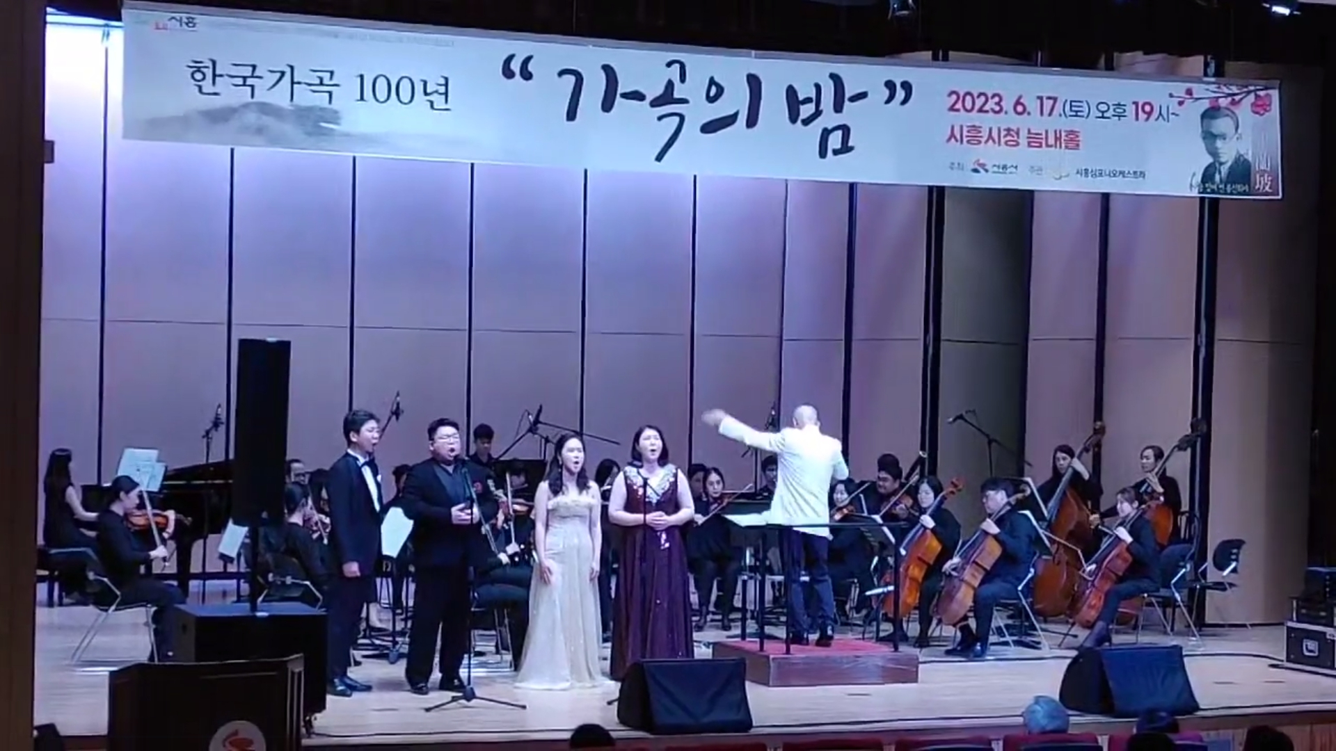 시흥시가 주최하고 시흥심포니오케스트라(지휘 김유노)가 주관하는 한국가곡 100년 ‘가곡의 밤’이 6월 17일 오후 7시 시청 늠내홀에서 열렸다. 2010년 창단 이래 심포니는 물론 오페라 뮤지컬 등 다양한 장르의 음악세계를 선보이고 있는 시흥심포니오케스트라는 성악가 4명과 함께 한국가곡의 아름다움과 정서를 관객들에게 아낌없이 나누어 주었다.