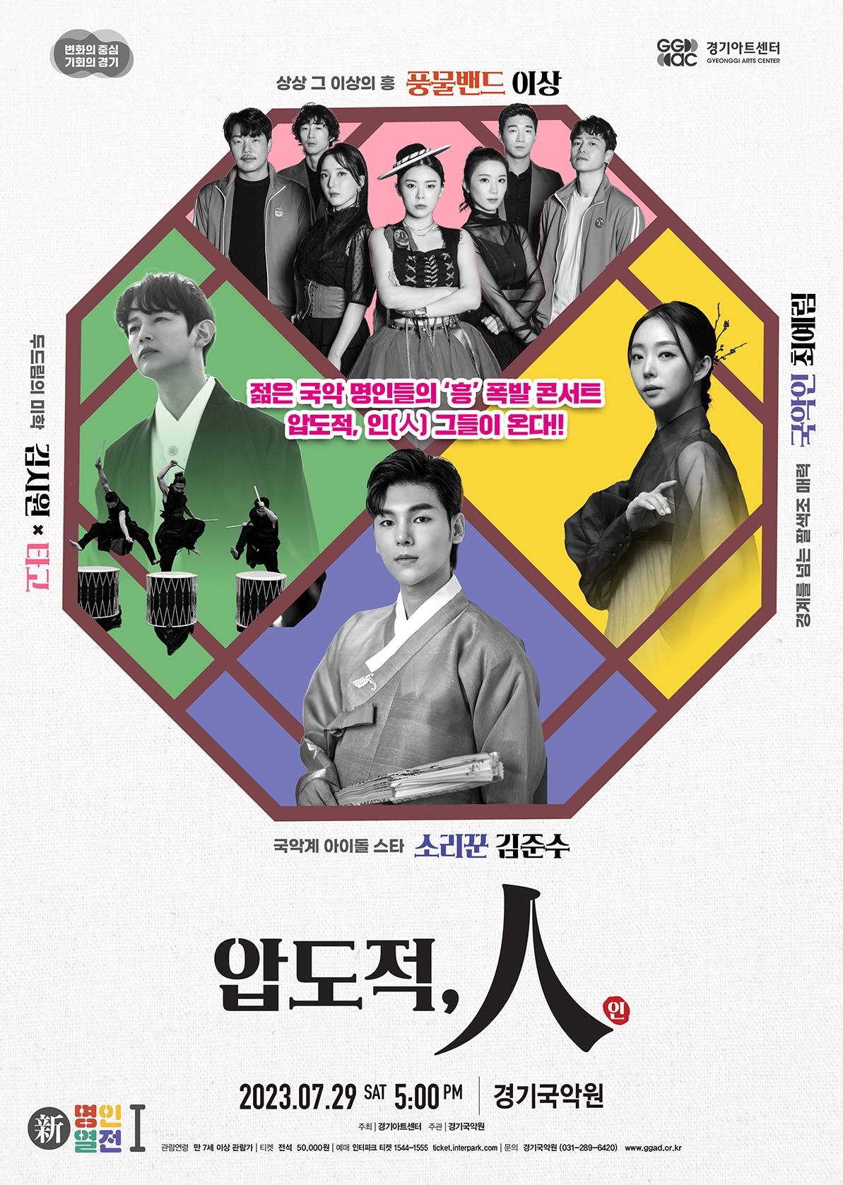 경기국악원 新명인열전 ‘압도적, 人(인)’ 콘서트 소리꾼 김준수 등 대세 국악 아티스트가 선보이는‘흥 폭발 콘서트! 우리 국악의 진면목과 무한한 가능성을 선보이는 무대