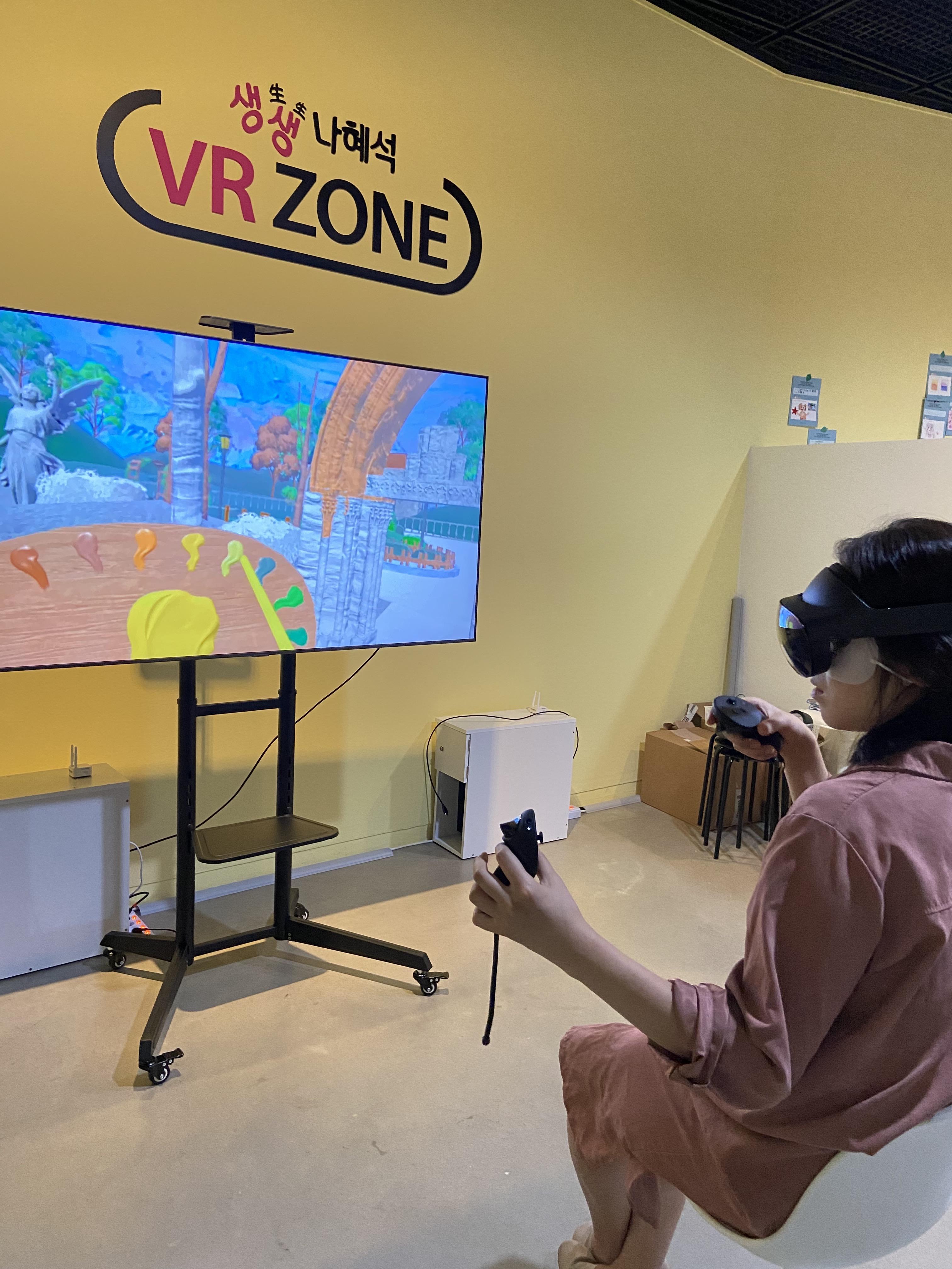 '생생(生生) 나혜석 실감 콘텐츠'는 수원시립미술관 2층 전시홀에서 VR(가상현실) 체험존과 나혜석 홀에서 AR(증강현실) 전시해설 두 가지로 운영한다.