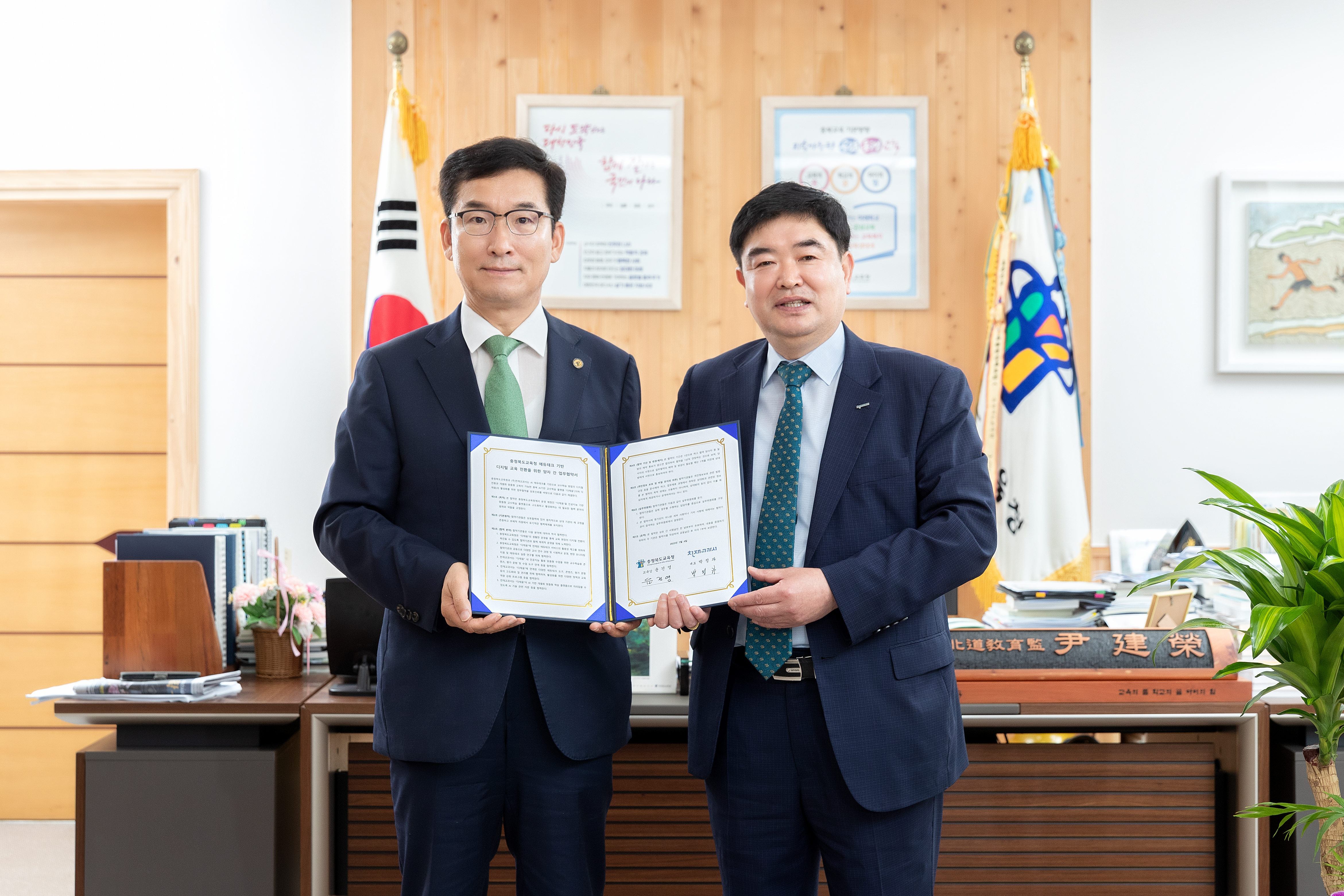 이날 업무협약은 향후 충청북도교육청에서 운영할 예정인 인공지능(AI) 기반 맞춤형 교수학습 플랫폼 ‘다채움’을 보다 고도화하고 활성화하기 위한 목적으로 추진됐다.