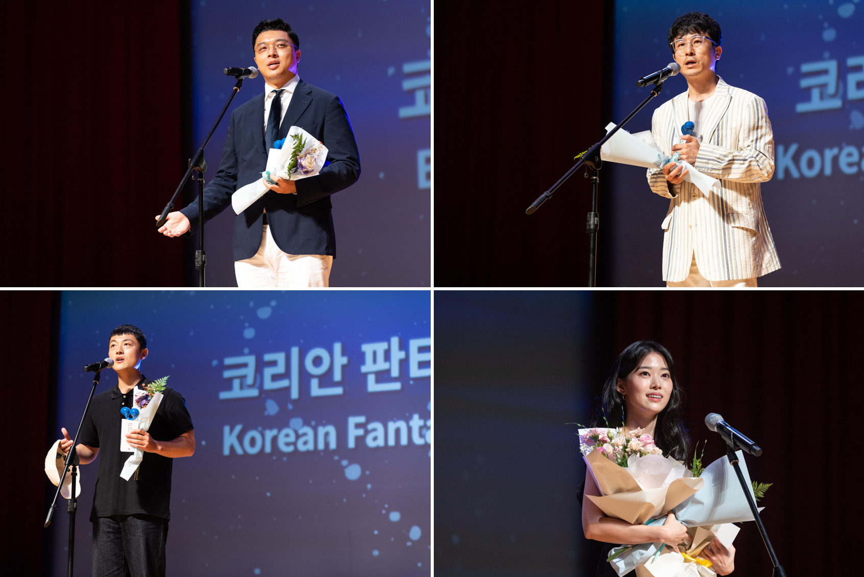 ▲ (왼쪽 위부터 시계방향) &lsquo;코리아 판타스틱: 장편&rsquo; 작품상 <만분의 일초> 김성환 감독, <위험사회> 김병준 감독, 코리아 판타스틱 배우상 <그녀의 취미생활> 정이서, <어브로드> 장성범