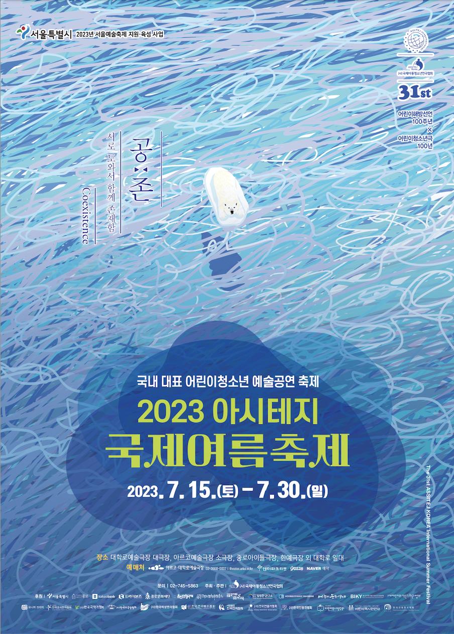 [플레이뉴스 문성식기자] 국내 대표 어린이청소년 예술공연 축제인 ‘2023 아시테지 국제여름축제(이하 여름축제)’가 2023년 7월 15일(토)부터 7월 30일(일)까지 16일간 대학로예술극장 대극장, 아르코예술극장 소극장, 종로 아이들극장, 한예극장 1관 외 대학로 일대 및 지역과 연계하여 광주, 부산, 서울 노원에서도 개최된다.