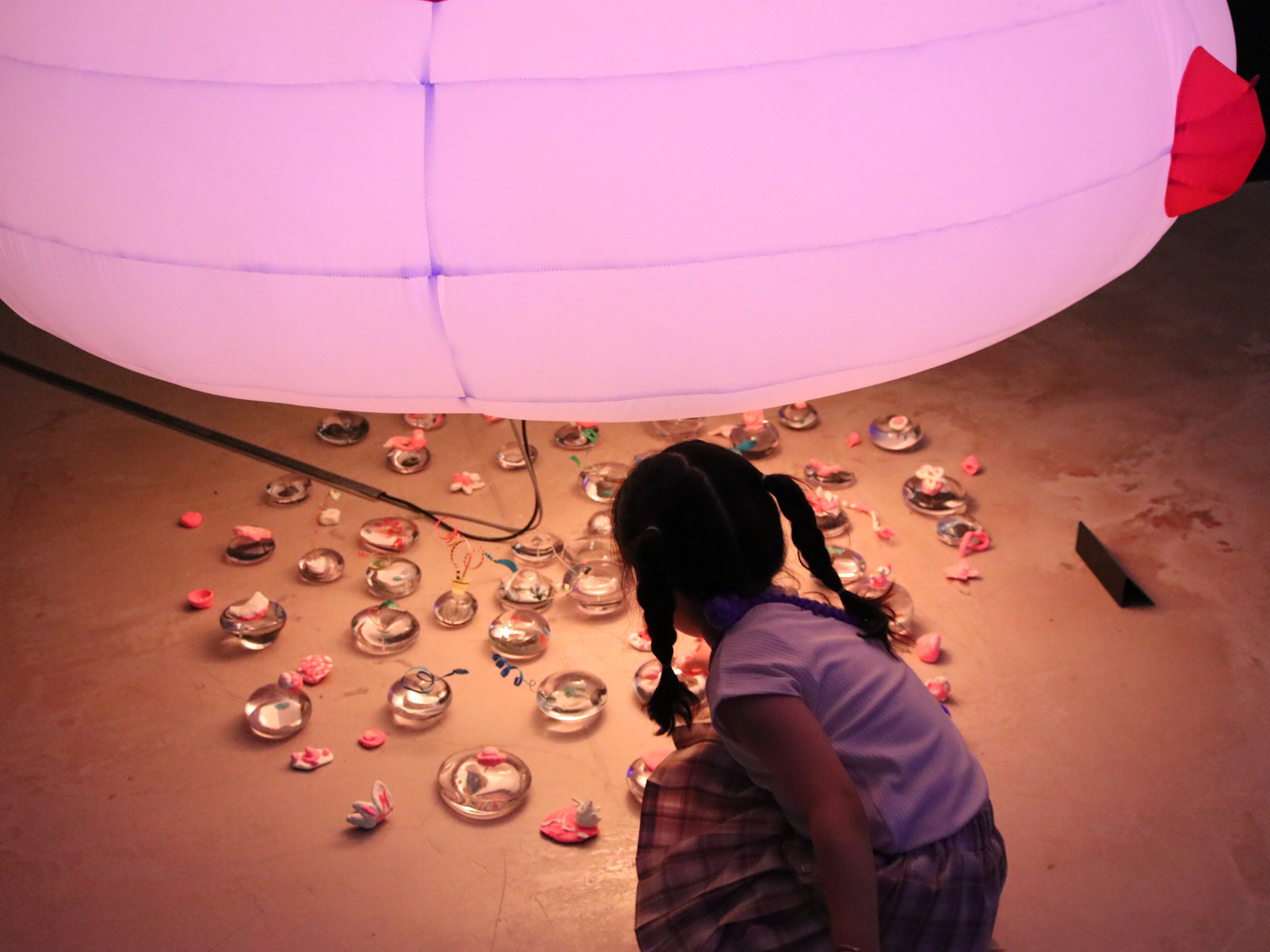 '코드그린 : 깨지기 쉬운 행성'(2022)은 다양한 형태로 제작한 유리 볼과 우주선 형태의 공기 조형물 작품 '김씨의 자가용'(2023)이 설치되어 마치 우주 공간에 온 듯한 연출이 돋보이는 공간이다. '반짝반짝 이야기 행성'은 참여자들이 야광 색연필, 클레이로 나만의 반짝반짝 이야기 행성을 칠하고 만든 뒤 작가의 작품과 함께 전시한다.