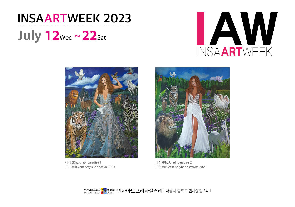인사동 소재 화랑 30곳이 참여하는 인사 아트위크에, 이번 인사아트프라자 갤러리는 물질만능으로 변해가는 현황을 예술을 통해 인간성을 회복하고, 치유와 함께 영원한 행복을 얻을 수 있는 자연과 인간의 자유로운 공존을 담아내는 자연주의 화가 '리정 개인전 ‘paradise’' 전시를 진행한다. '리정 개인전 ‘paradise’'는 7월 19일부터 7월 25일까지 서울 종로구 인사동길 인사아트프라자 갤러리(회장 박복신) 1층에서 열릴 예정이다.