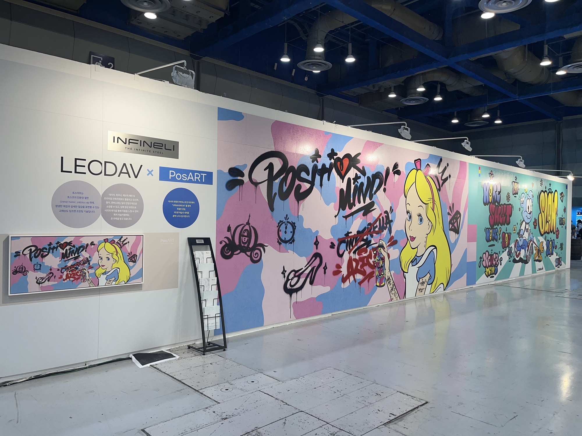 포스코스틸리온은 이번 전시회에 자사의 고해상도 잉크젯 프린트 강판인 ‘포스아트’를 활용해 유명 그라피티 아티스트인 레오다브(LEODAV)와 협업해 대형 작품들을 전시한다.