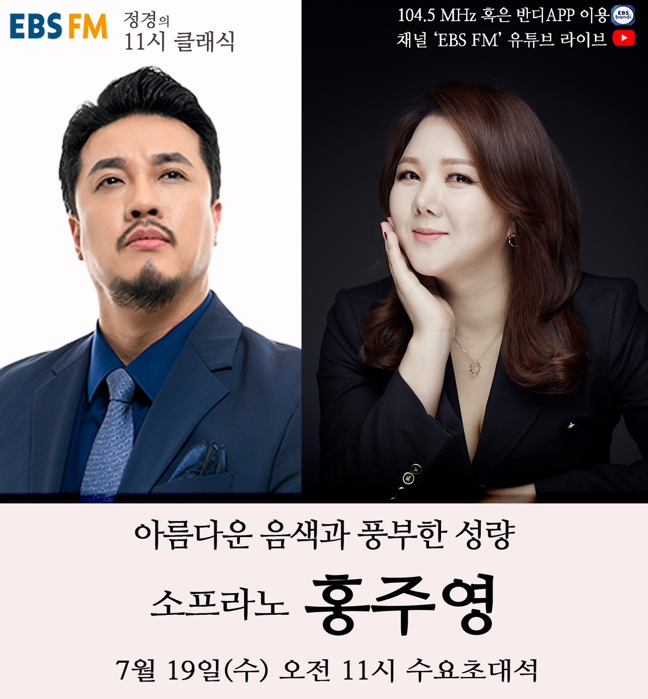 7월 19일에는 청아하고 매력적인 음색을 지닌 소프라노 홍주영이 출연, 음악과 인생 이야기로 감동을 전할 예정이다.