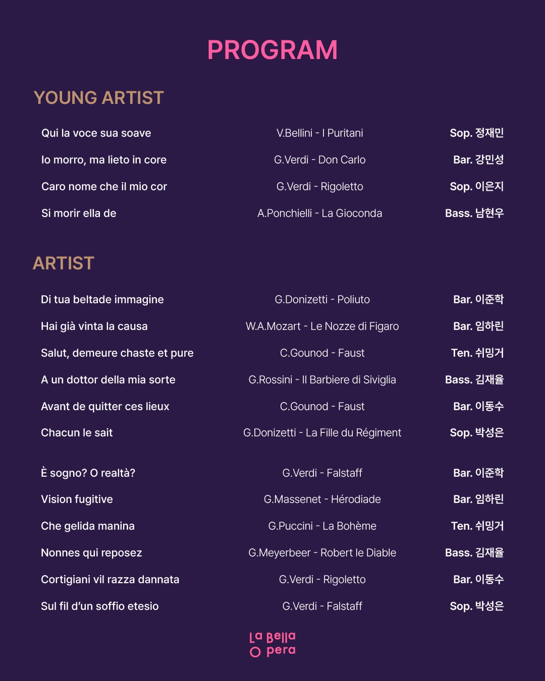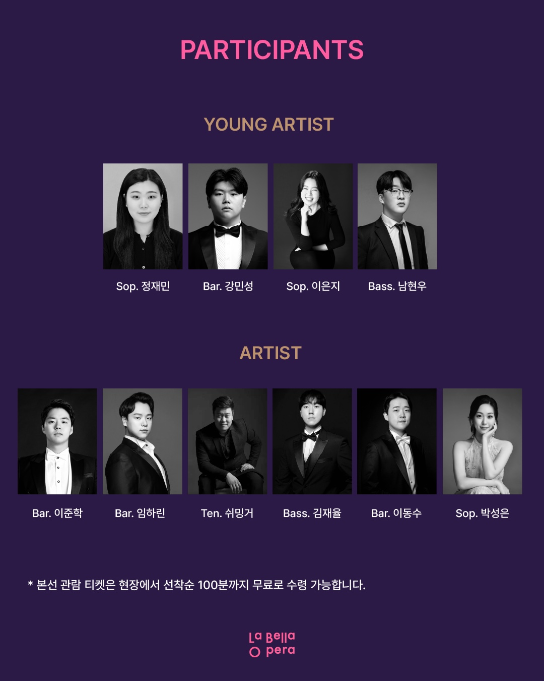 재능 있는 미래의 오페라스타를 미리 볼 수 있는 이번 콩쿠르 본선은 전석 무료로 관람이 가능하며, 선착순 100명만 관람이 가능하다.