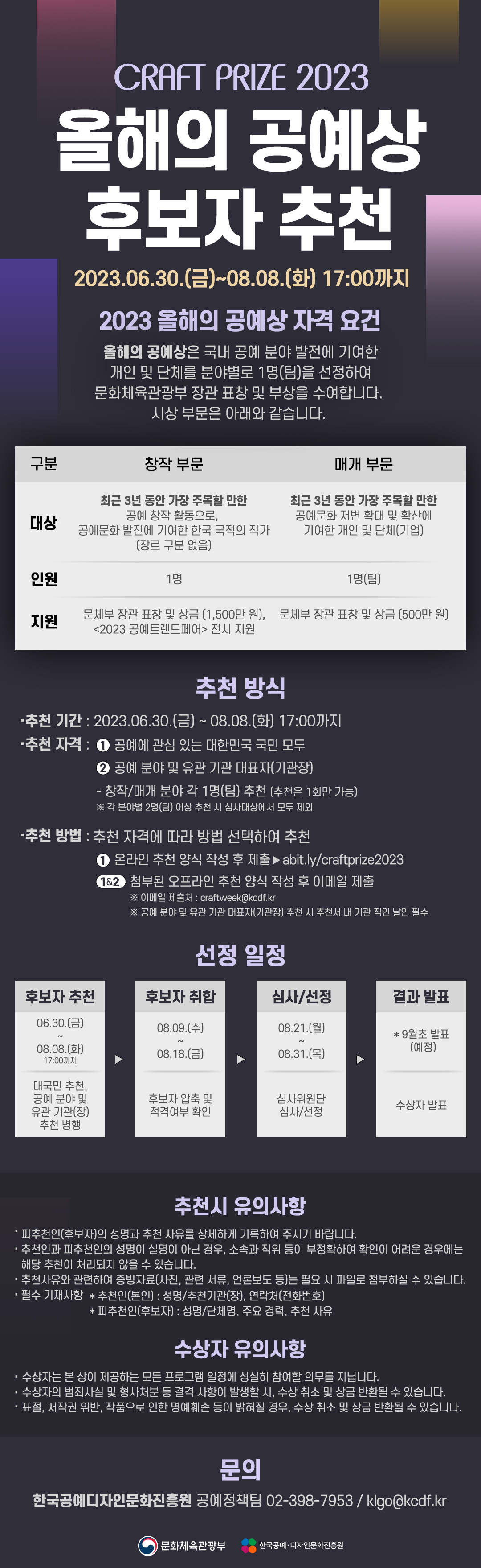 - 공예문화 발전 및 확산에 기여한 창작부문, 매개부문 후보자 공모
