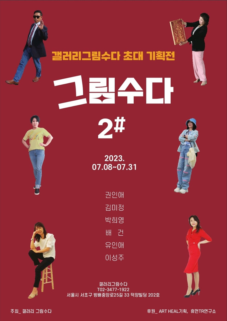 [플레이뉴스 문성식기자] 그림 속 이미지의 개성은 다르지만 순수 미술 창작의 열정은 가득한 중견작가 6인의 작가들이 모여 "그림수다 6인 초대 기획전"을 2023년 7월 8일(토) ~ 7월 31일(월)까지 서울 서초구 소재의 갤러리그림수다에서 전시를 진행 중에 있다.